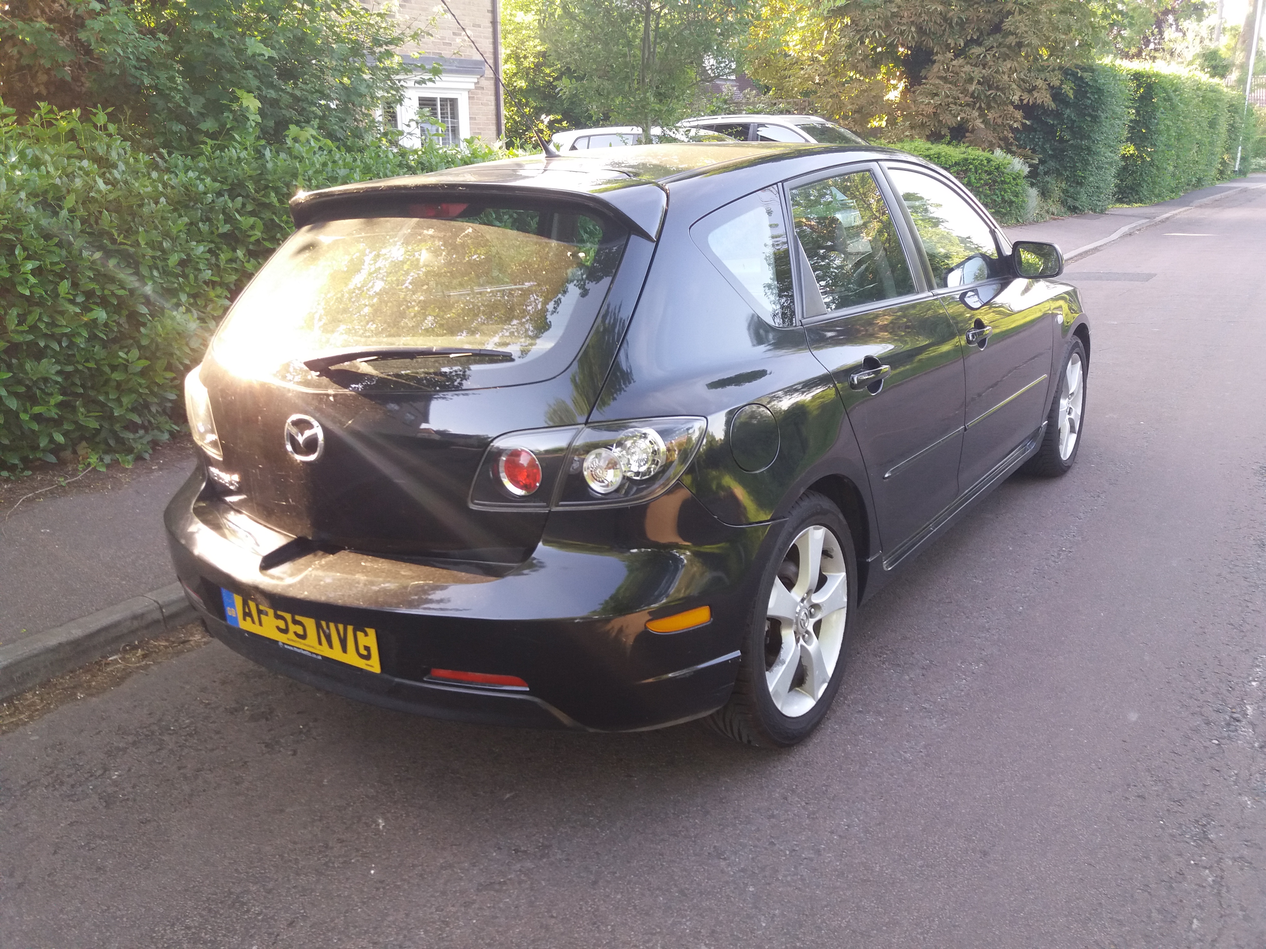 Oglądałem wpierw jedną ale problem z papierami a dokładnie brak wszelakich i zasyfiona w środku i jakos to tak niespecjalnie jedzie , ogladam kolejną,no jest rysa od kluczyków ale zaprawiona,no jest trochu rudej na nadkolu ale nie przeżarte,przebieg przyzwoity 94500 mil cena dobra,pełna historia serwisowa wraz z fakturami no to decyzja że biorę i tak sie znalazłem w posiadaniu kolejnej Mazdy.Pozycja za kierownicą od razu znaleziona,idzie toto całkiem sprawnie,drugiej połowie rowniez sie widzi