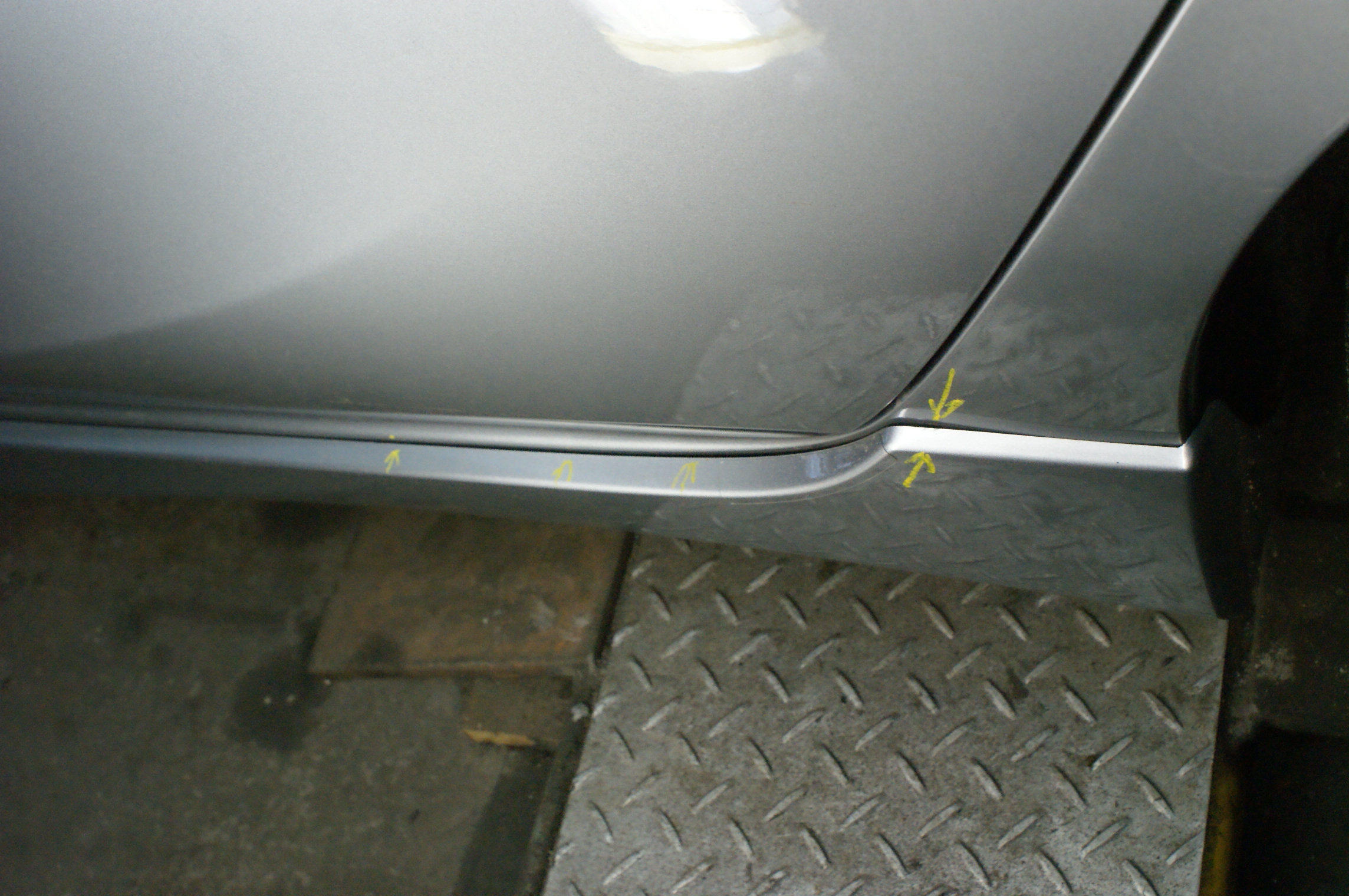 Z tego co wywnioskowalem, podczas stluczki musial zostac naruszony zawias drzwi, przez to linia troszke odbiega od normy... prawdopodbnie nie zostalo to poprawione by nie naruszac slupka, tutaj zdjecie z widoczna przerwa miedzy progiem a bryla Madzi i widoczna linia drzwi