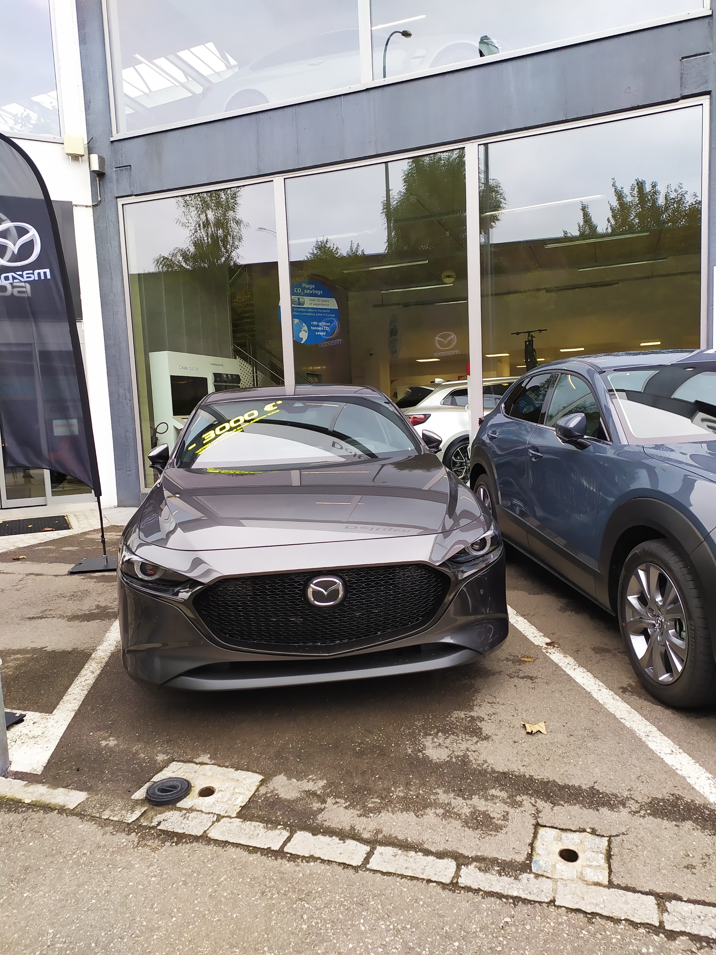 Hatchback 3 BP Hikari w kolorze Machine Gray.Pod maska 2.0 benzyna,122 kM/90 kW/213 Nm przy 4000 obr/min.Przekladnia byla w planach automatyczna aaaale brakowaloby mi "wajhowania" :D stad stanelo na szesciostopniowym manualu.Wersja wyposazenia Sky Cruise.Stan licznika w dniu odbioru 5 km. <rotfl>