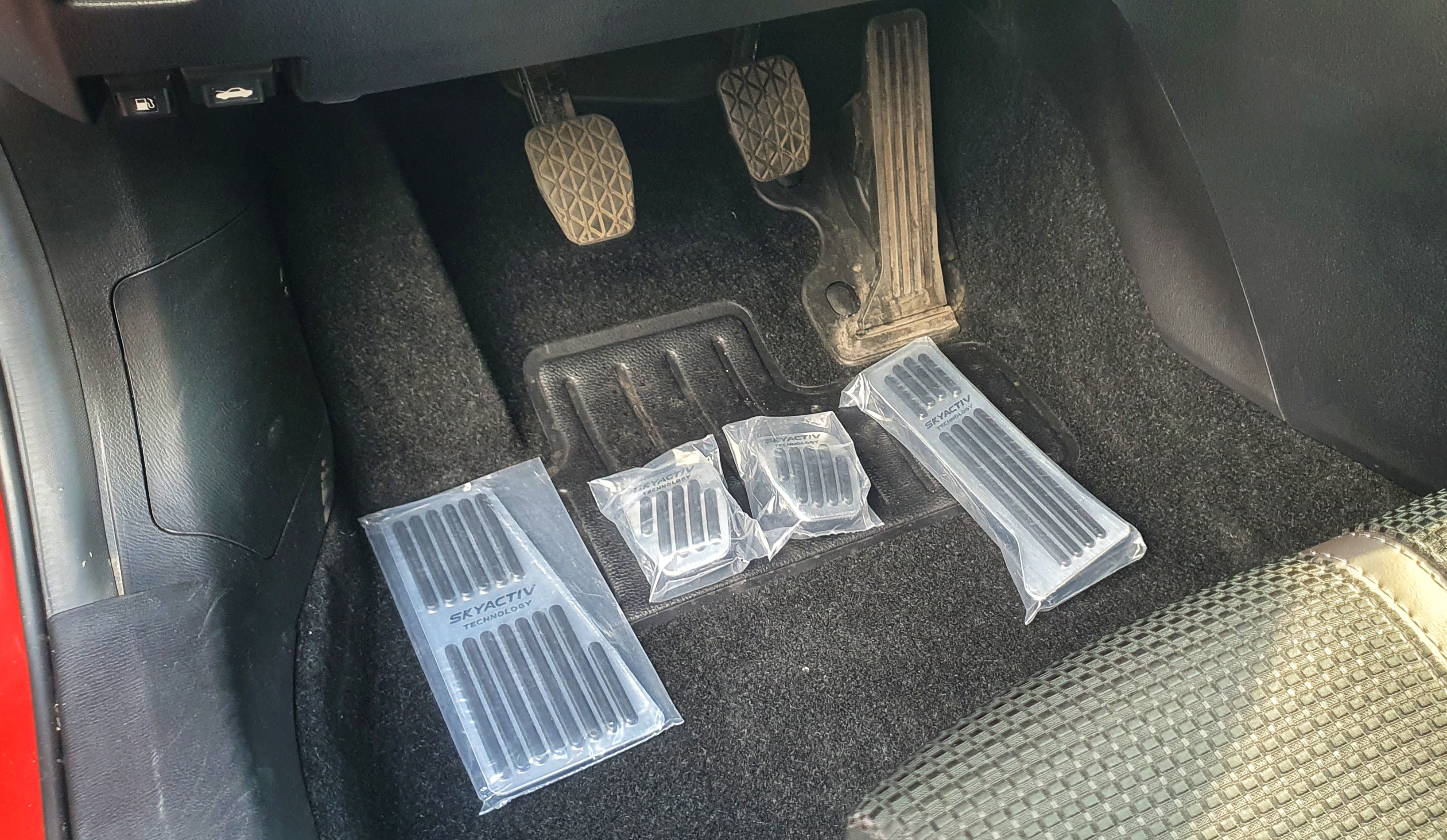 Tu wybór padła na fabryczne dywaniki gumowe Mazdy.
