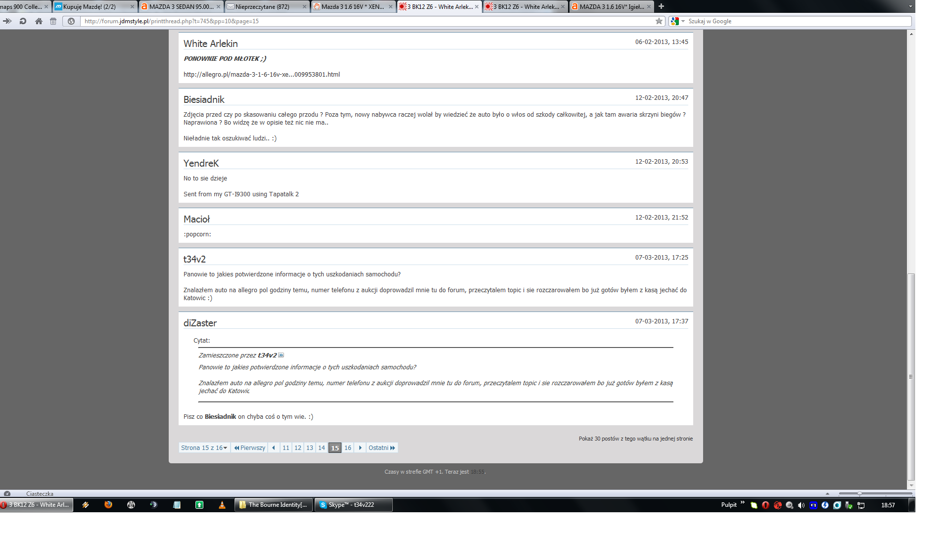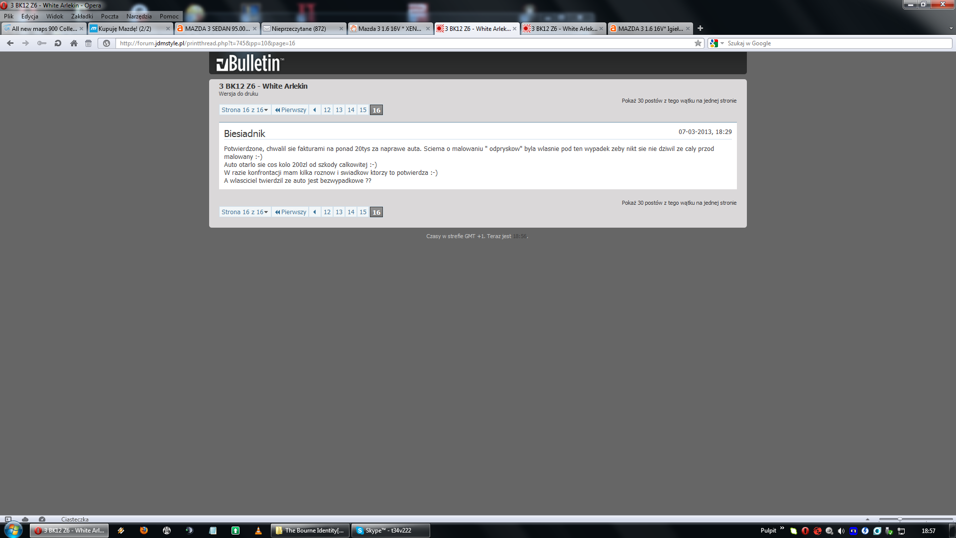 Po wpisaniu jego numeru telefonu 607 99 97 98 trafiamy na forum forum.jdmstyle.pl , nazwa uzytkownika sprzedającego to White Arlekin. Na forum jest cały worklog z "tuningu" mazdy oraz ogłoszenie sprzedaży. Są też posty innych ludzi z katowic, po tym jak zapytałem o auto: