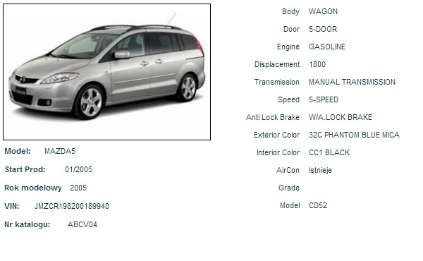 Witam.Baaaardzo proszę o sprawdzenie VIN JMZCR198280213171.