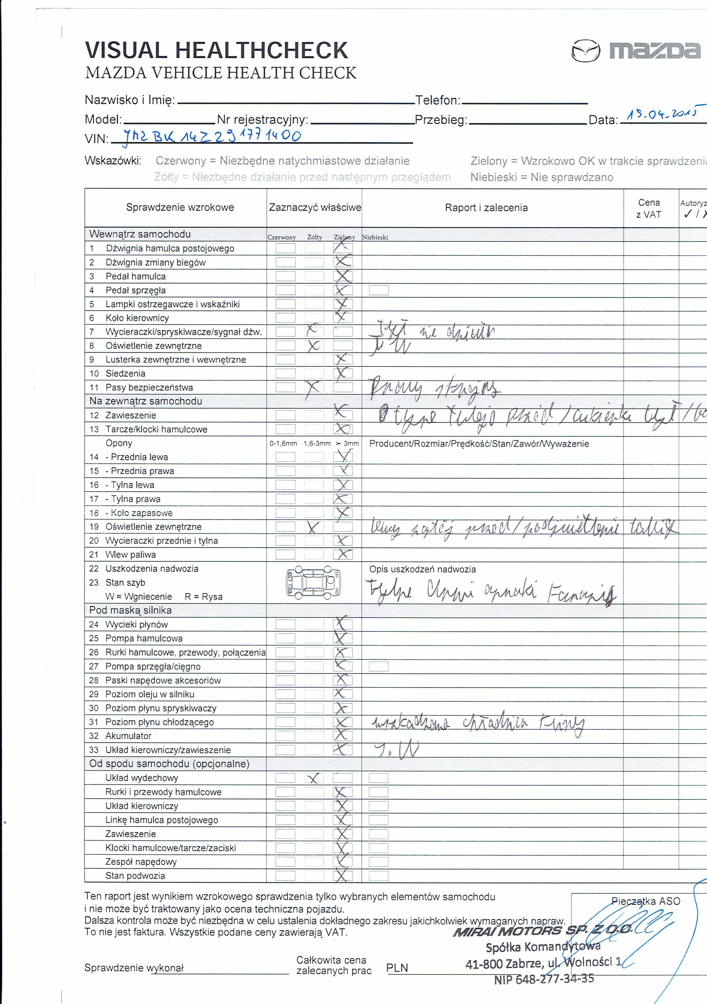 Wziąłem samochód na ASO w Zabrzu i niestety badanie nie wyszło zbyt dobrze.