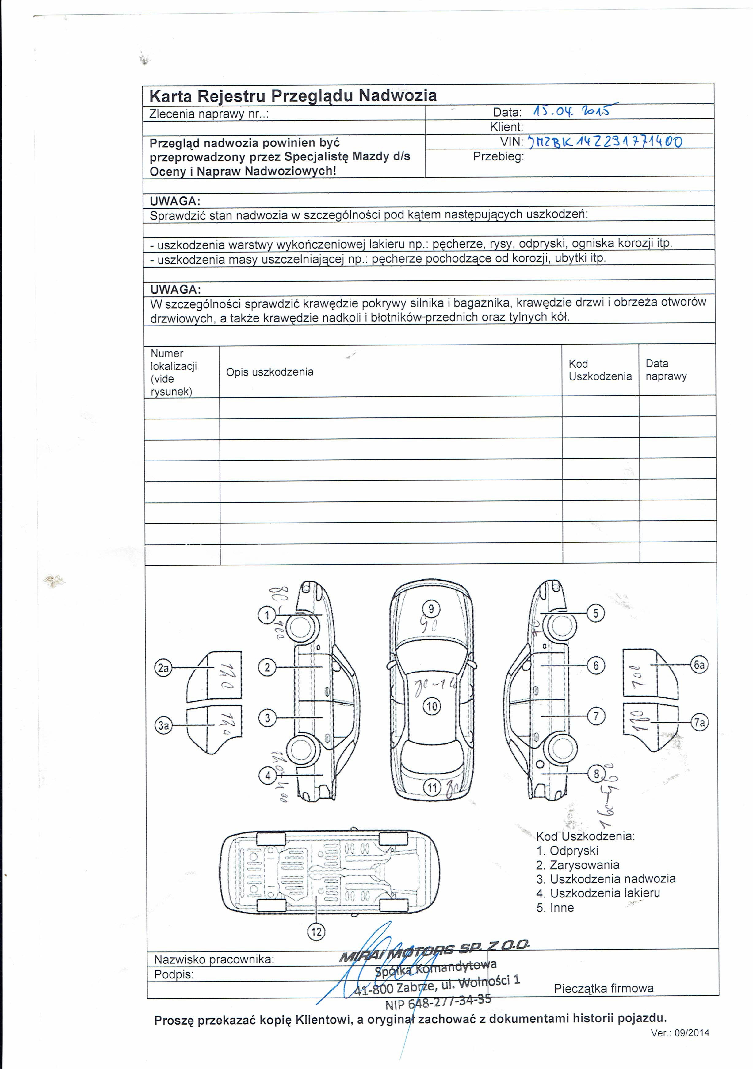 3 – raport z przeglądu (on miał w sumie 2 kartki) z opisanymi i pozaznaczamy rzeczami, które zostały sprawdzone i z uwagami od nich