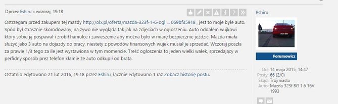 Co do auta, bo może ktoś stwierdzić, że nie ważne kto sprzedaje, jak fura jest spoko. Nie wrzucałem tematu do mazdoszrotów, bo aż taki szrot to to nie jest. Warto jednak wiedzieć, że Niemiec tej igiełki pod kocem nie trzymał.