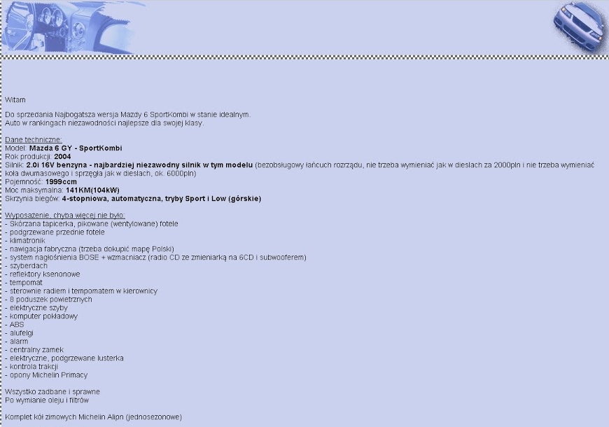 "Swoją chęć zakupu ogłosiłem tutaj: http://bezwypadkowe.net/f389/mazda-6-kombi-22927/