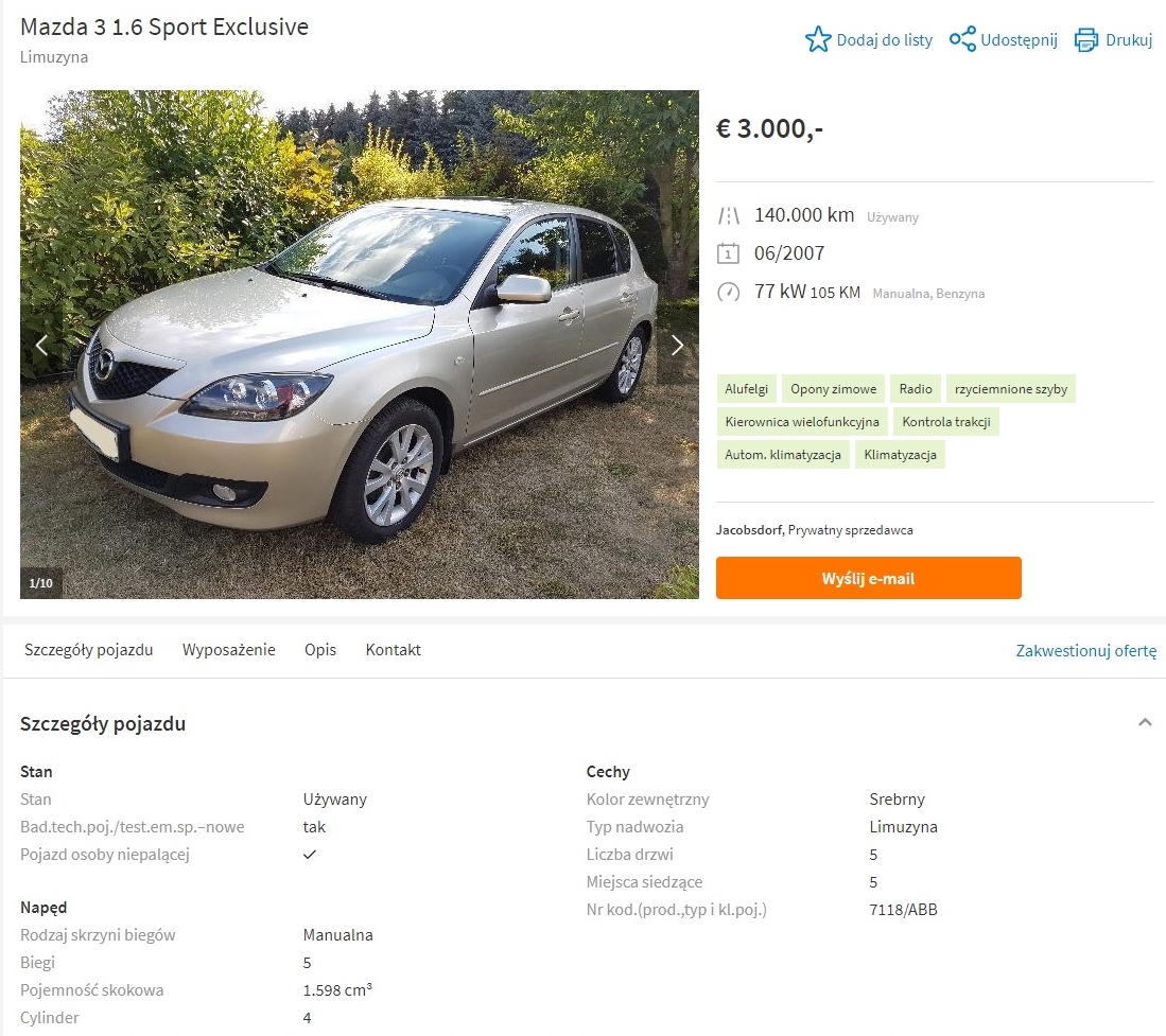 Jestem się coraz bliżej zakupu Mazdy... Znalazłem na autoscout taką Mazdę3 z 2007 roku, 140 tys. przebiegu – poproszę o opinię :)