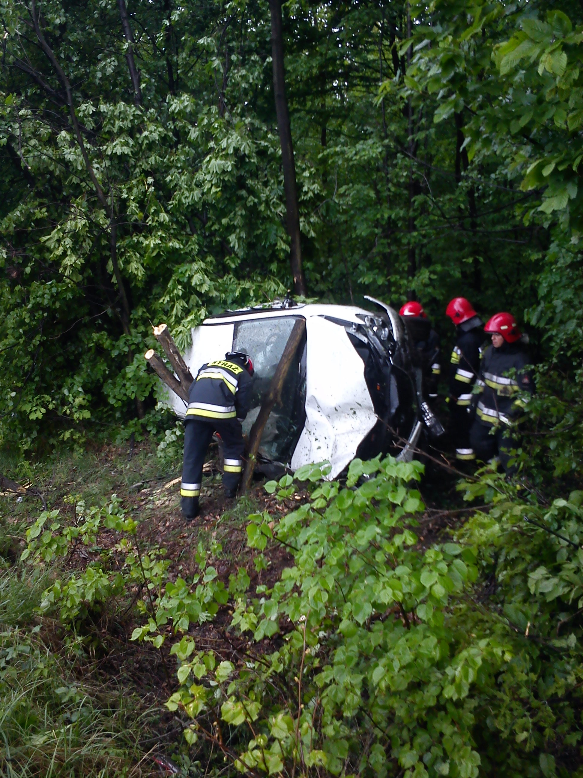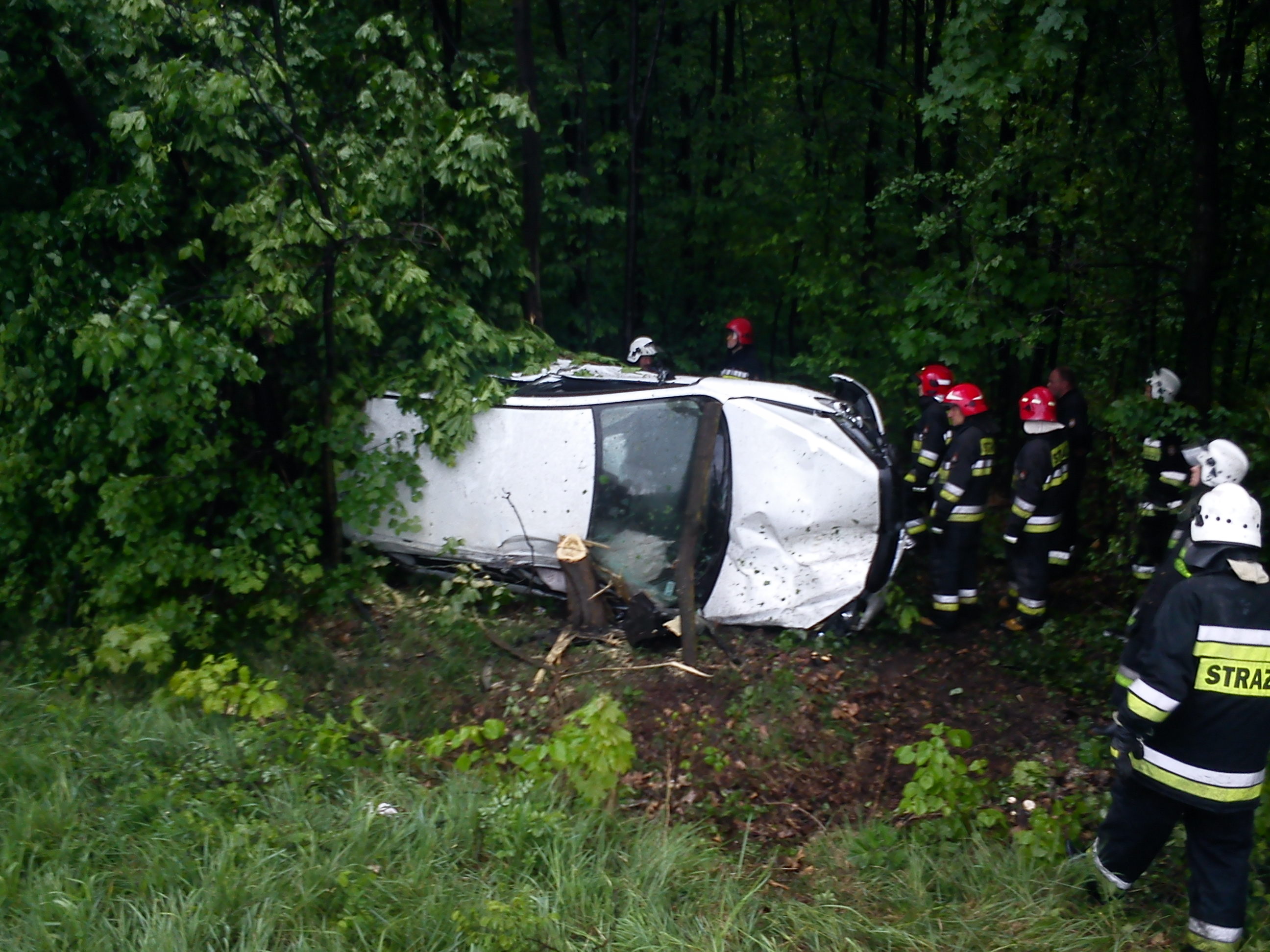 Autko zamówione było ostatniego lutego,wyjechałem nim z salonu 18 kwietnia. Pojeździłem nim niecały miesiąc do wczoraj. Niestety się popsuło. Jeden Wieswagen zajechał mi drogę. Wpadł w poślizg uderzył mnie swoimi prawymi drzwiami w lewy przód. Poleciałem do lasu zrobiłem śrubę w powietrzu połamałem kilka drzew i wylądowałem na boku pasażera. Auto niestety do kasacji. Ale ja wyszedłem z autka sam nic złamanego, kilka zadraśnięć jak przy goleniu. Widocznie jaszcze mnie nie potrzebują po drugiej stronie. Strażacy i pogotowie byli w ciężkim szoku, myśleli że jadą do ....... Wg nich muszę iść do Czestochowy.