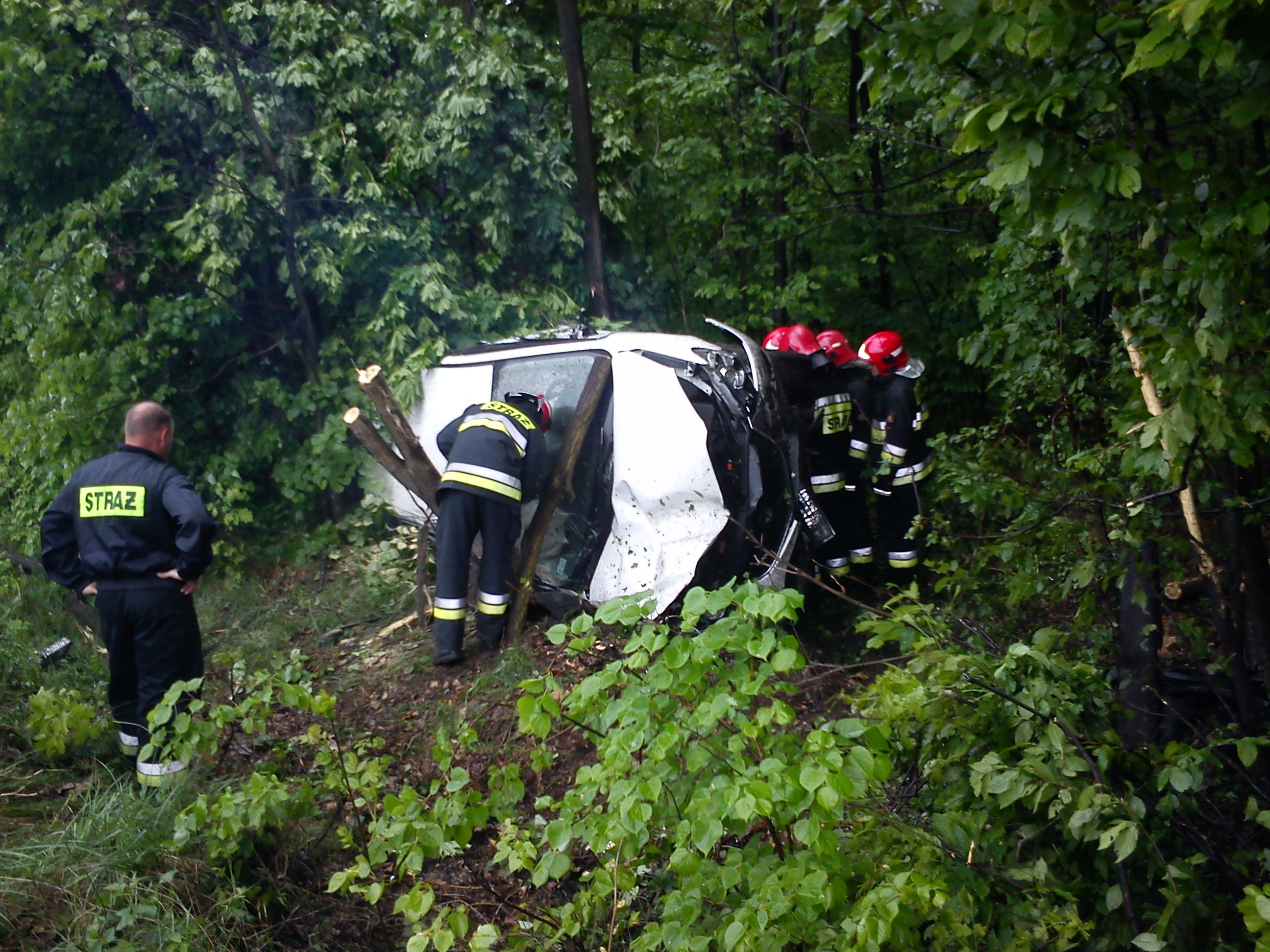 Autko zamówione było ostatniego lutego,wyjechałem nim z salonu 18 kwietnia. Pojeździłem nim niecały miesiąc do wczoraj. Niestety się popsuło. Jeden Wieswagen zajechał mi drogę. Wpadł w poślizg uderzył mnie swoimi prawymi drzwiami w lewy przód. Poleciałem do lasu zrobiłem śrubę w powietrzu połamałem kilka drzew i wylądowałem na boku pasażera. Auto niestety do kasacji. Ale ja wyszedłem z autka sam nic złamanego, kilka zadraśnięć jak przy goleniu. Widocznie jaszcze mnie nie potrzebują po drugiej stronie. Strażacy i pogotowie byli w ciężkim szoku, myśleli że jadą do ....... Wg nich muszę iść do Czestochowy.