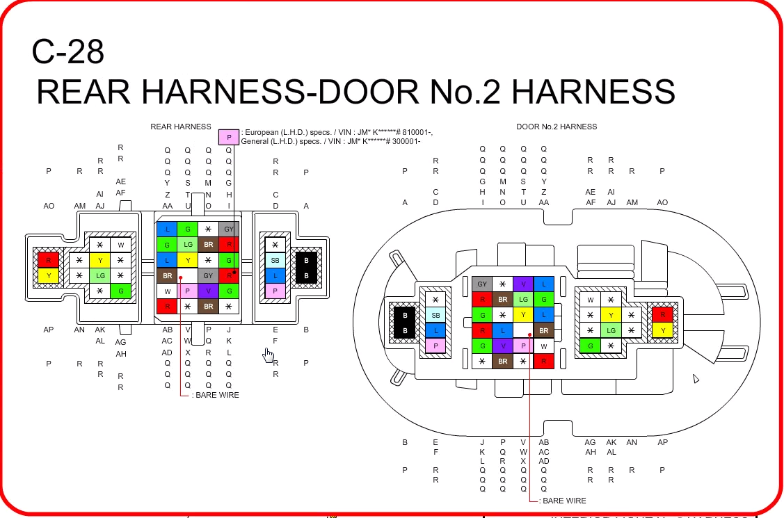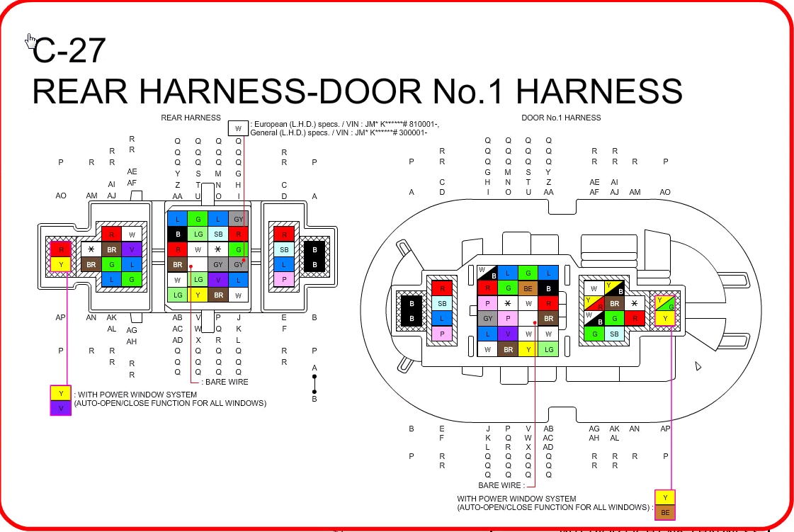 @k31t złączki, które wrzuciłeś w pdf'ie przedstawiają wersje europejskie prawda? Mógłbym jeszcze poprosić o zdjęcie głównej złączki drzwi prawych przednich dla modelu z moim VINem (C28 ale dla drzwi prawych – pewnie C27 albo C29)? Porównam wersje amerykańską z europejską.