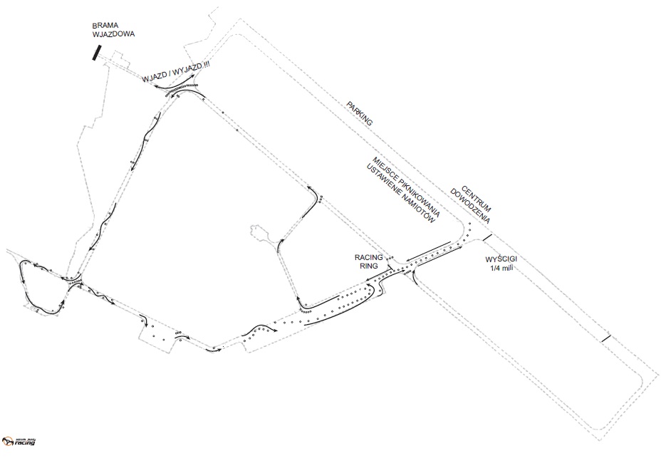 Wjazd bramą po prawej po jakichś maks. 2 km.