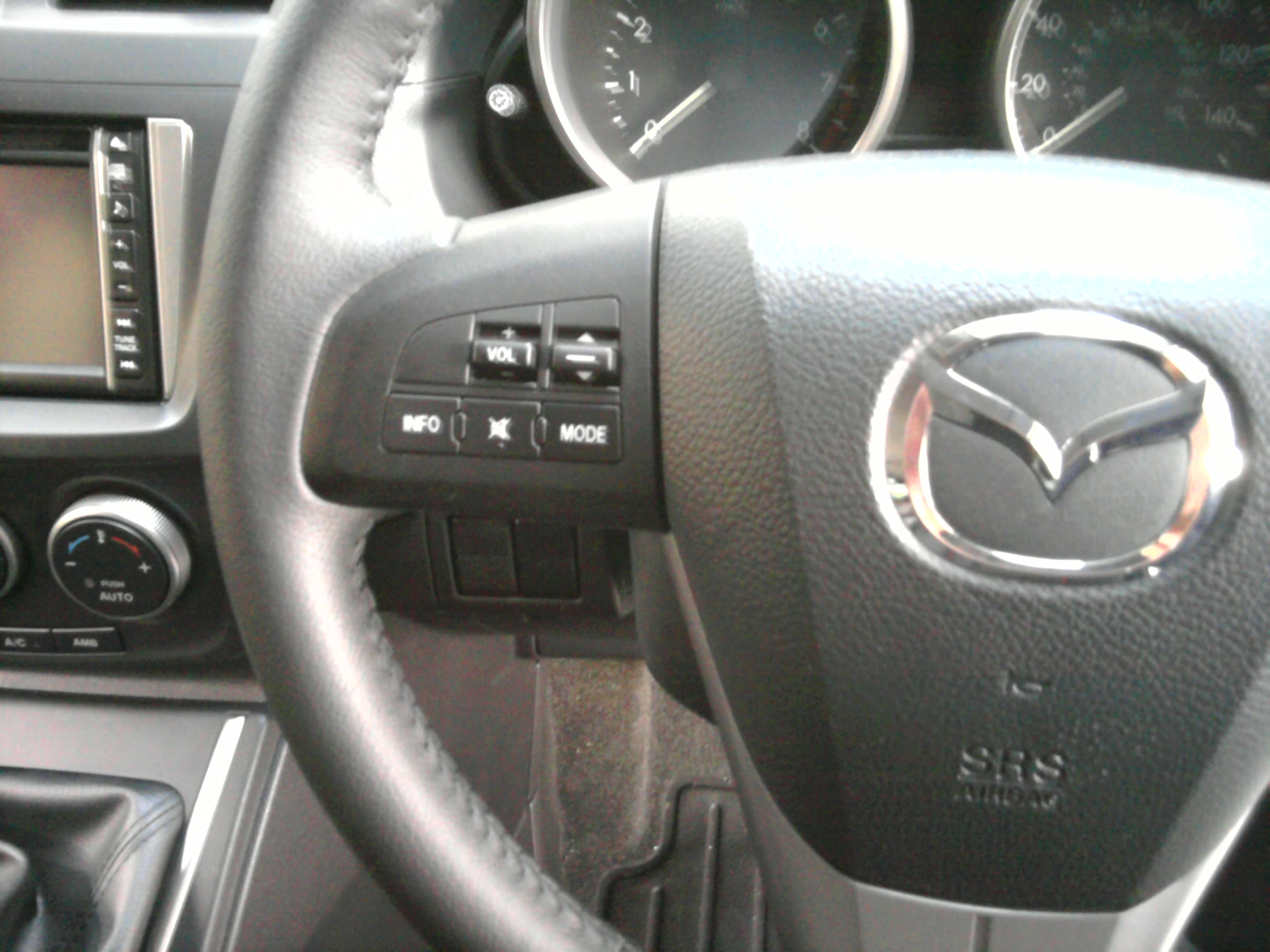 Salon mazdy w Rzeszowie wyjaśnił mi telefonicznie, że zmiany wyświetlania komputera obsługuję za pomocą klawisza MODE na kierownicy. U mnie niestety klawisz ten zmienia zakres fal radia. Nie mam kompa czy może coś źle robię