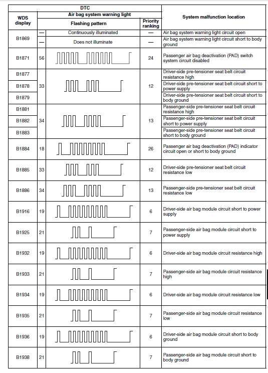 Identyfikacja kodów błędów SRS – migająca kontrolka poduszki powietrznej.