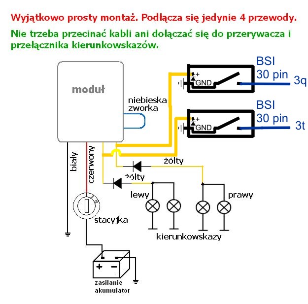 3 i 4 przecinamy kabel i wstawiamy szeregowo kierunek lewy przed (lub za bo nie wiem dokładnie) BSI