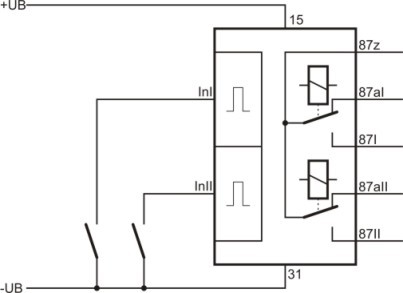 2 diody służą do zabezpieczenia modułu przez cewkę a następne diody służą do zatrzymania sygnału z modułu do świateł.