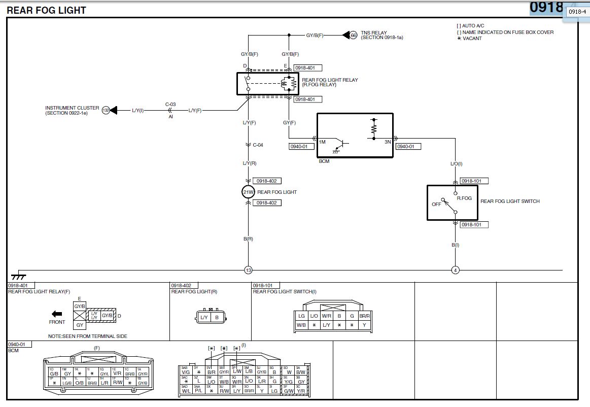 Czyli po wysterowaniu przez komputer (BCM) włącza się przekaźnik i zapalają się jednocześnie żarówki i kontrolka. Ja bym zaczął od odłączenia tego przewodu co wchodzi na 3N, albo jeśli ten problem świecenia jest częsty to po samoczynnym załączeniu się światła przeciwmgielnego sprawdziłbym czy na 3N jest masa.