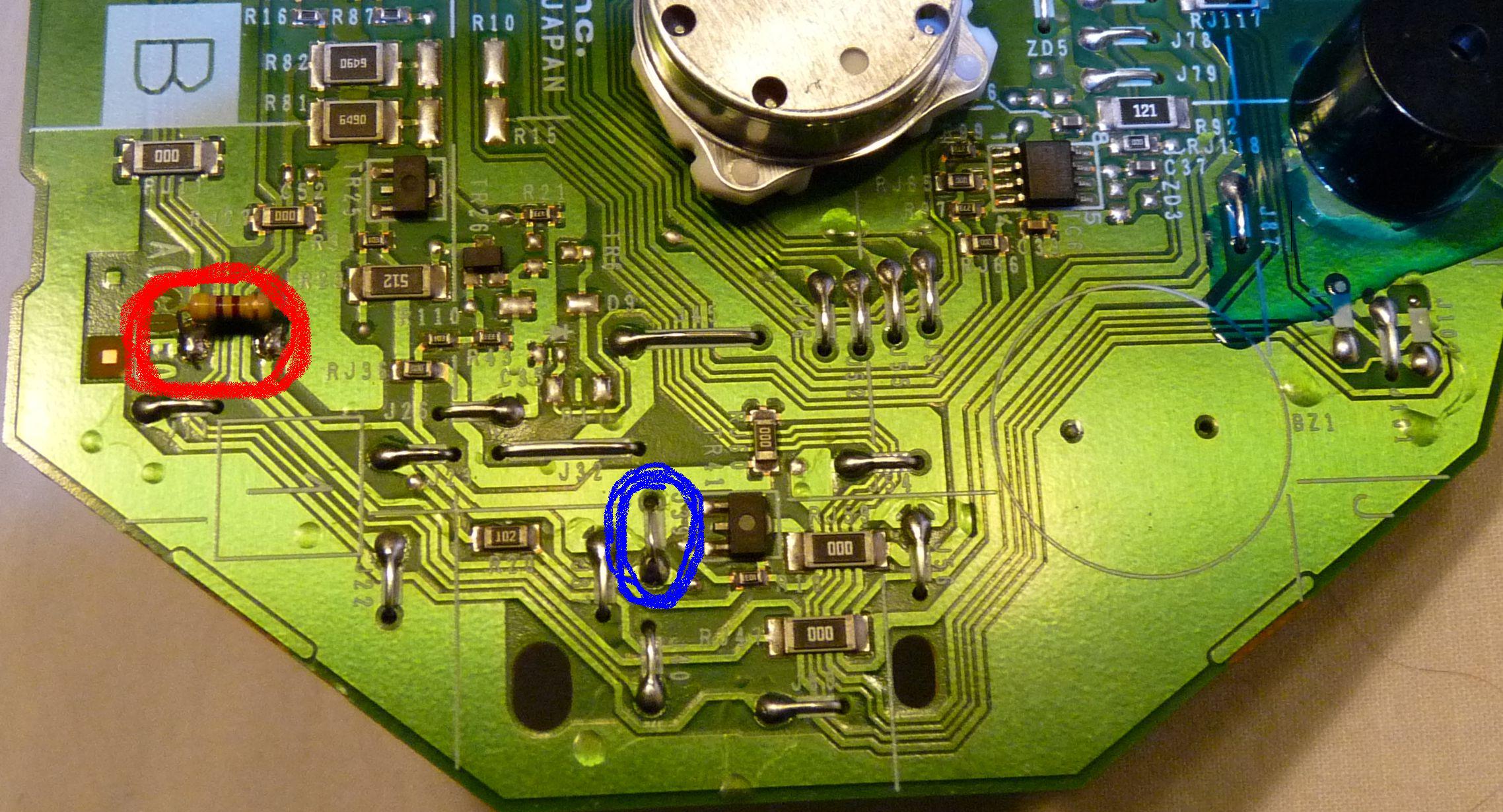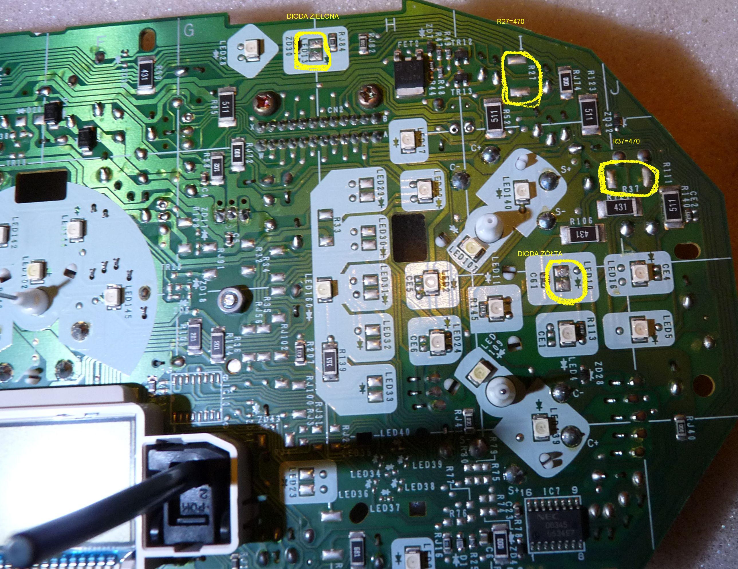 To samo robimy z diodą CRUISE. Górna nóżka na czerwony kabel a dolna do którejś nóżki z procesora (wydaje mi się że pierwszej od góry).