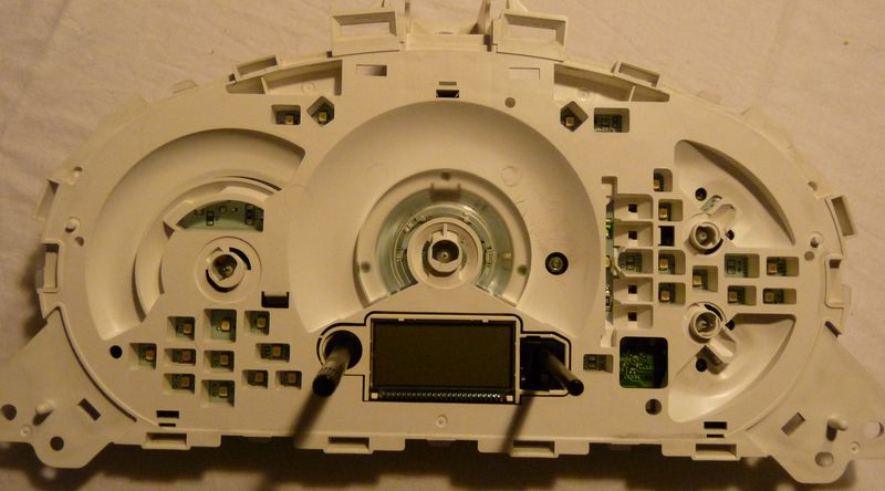 Dodatkowo zobaczcie na położenie w punkcie "zero" tych wskazówek. Na zdjęciu jest źle to zrobione (potem to poprawiłem). Wskazówki od temperatury i paliwa powinny startować od ujemnego położenia a nie od zera.