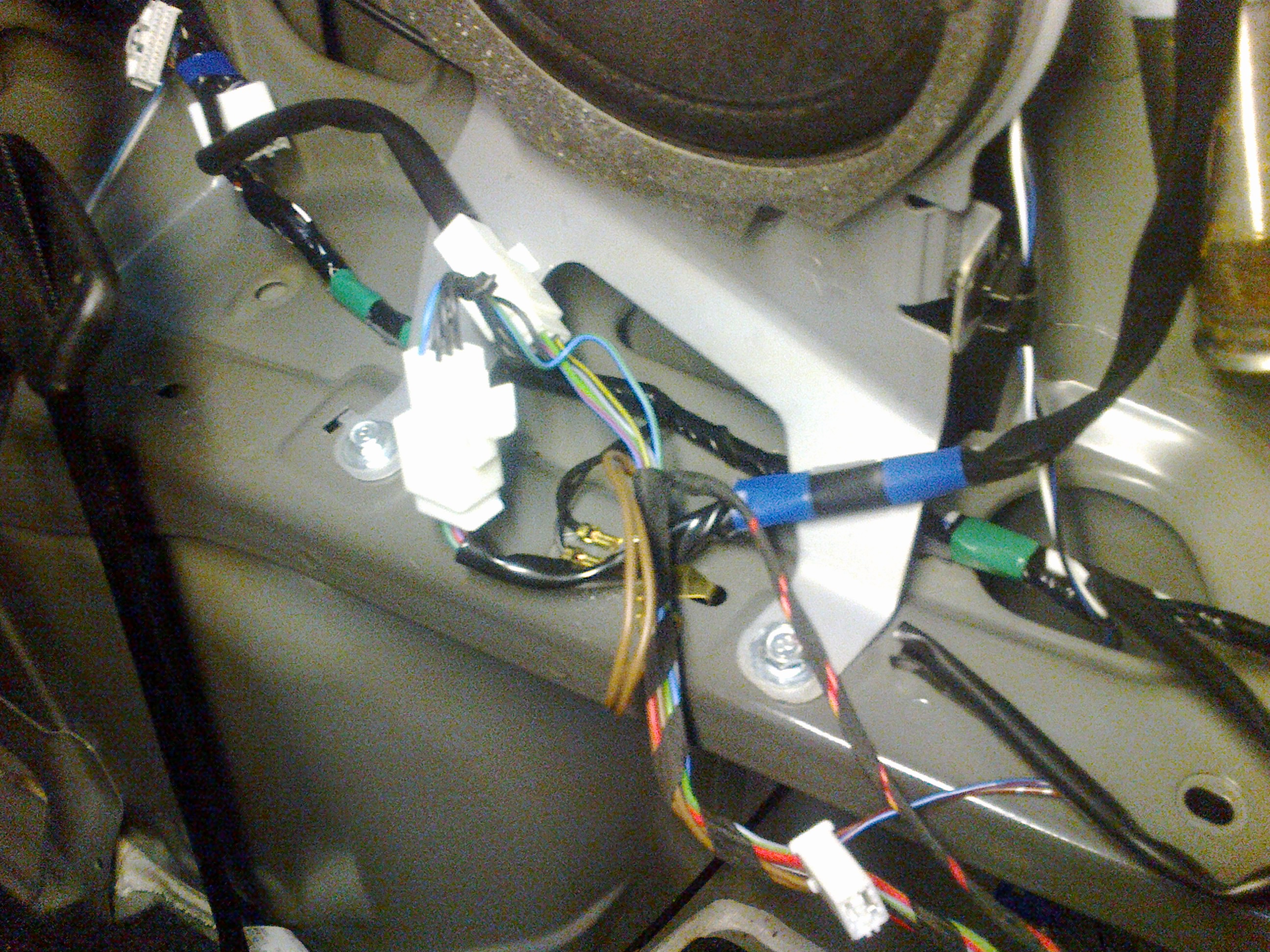 Te dwa przewody to Kierunkowskaz i pozycyjne. Brakuje ich w jednej wiązce i zostały dociągnięte z drugiej strony. Sprawdź te przewody czy od tego leżenia pod kołem zapasowym nie przetarły się i nie robią jakiegoś zwarcia. Sprawdź też jeszcze jedno – czy na światłach krótkich czy na pozycyjnych (postojowych masz zwarcie) – zapewne na jednych i drugich, ale sprawdź.