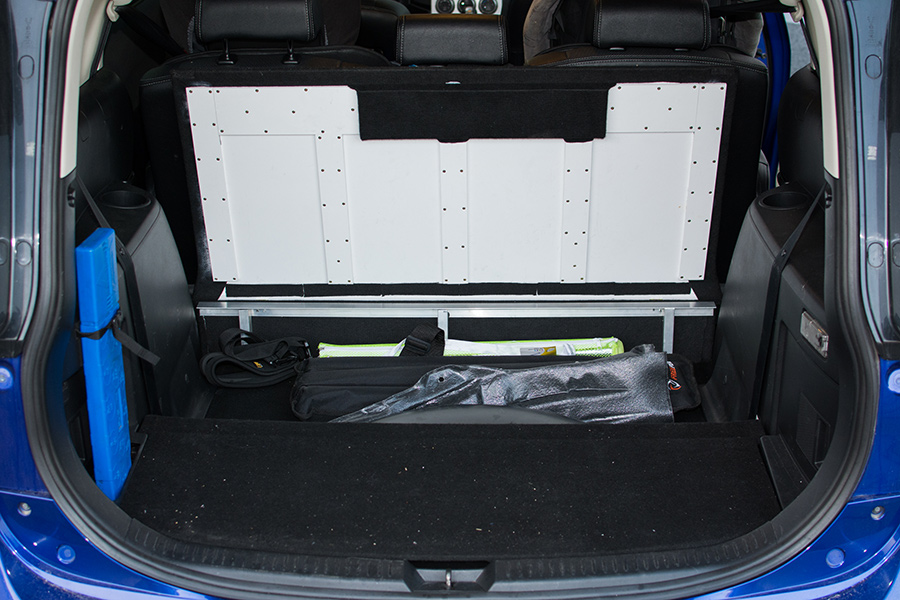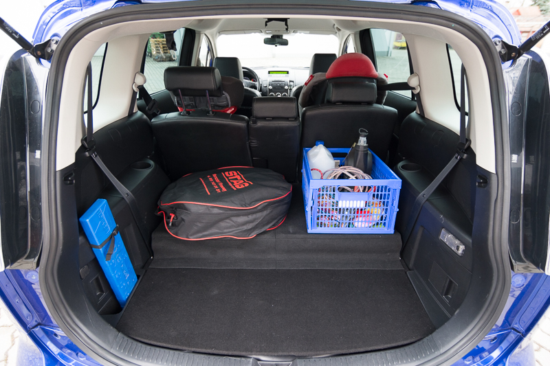 Mi tez nie podobała się ta szpara po podniesieniu siedzeń (miała koło 5cm) oraz to, że po wywaleniu schowka podłoga w bagażniku była nierówna i zrobiłem tak – wywaliłem 3 rząd ( i tak go nie używam) i zrobiłem nową podłogę z płyty OSB oklejonej wykładziną samochodową: