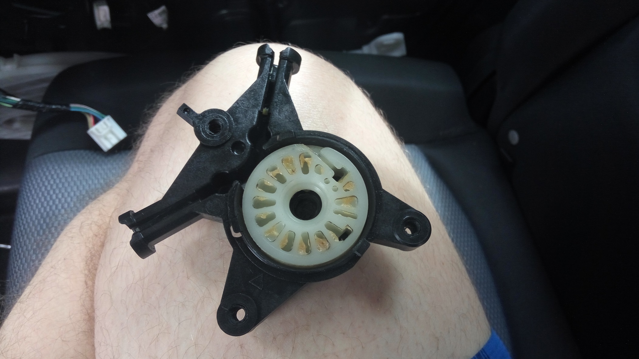 Miałem problem ze sterowaniem szyby w tylnych drzwiach. Po rozmontowaniu obudowy drzwi i odkreceniu silnika, okazało się, że silniczek działa. Po zamontowaniu go z powrotem na miejsce szyba zaczęła się otwierać i zamykać, lecz przy montażu tylna obudowa ślimaka (kółka, na którym zwija się linka) wpadła w drzwi i wszystko się rozleciało.