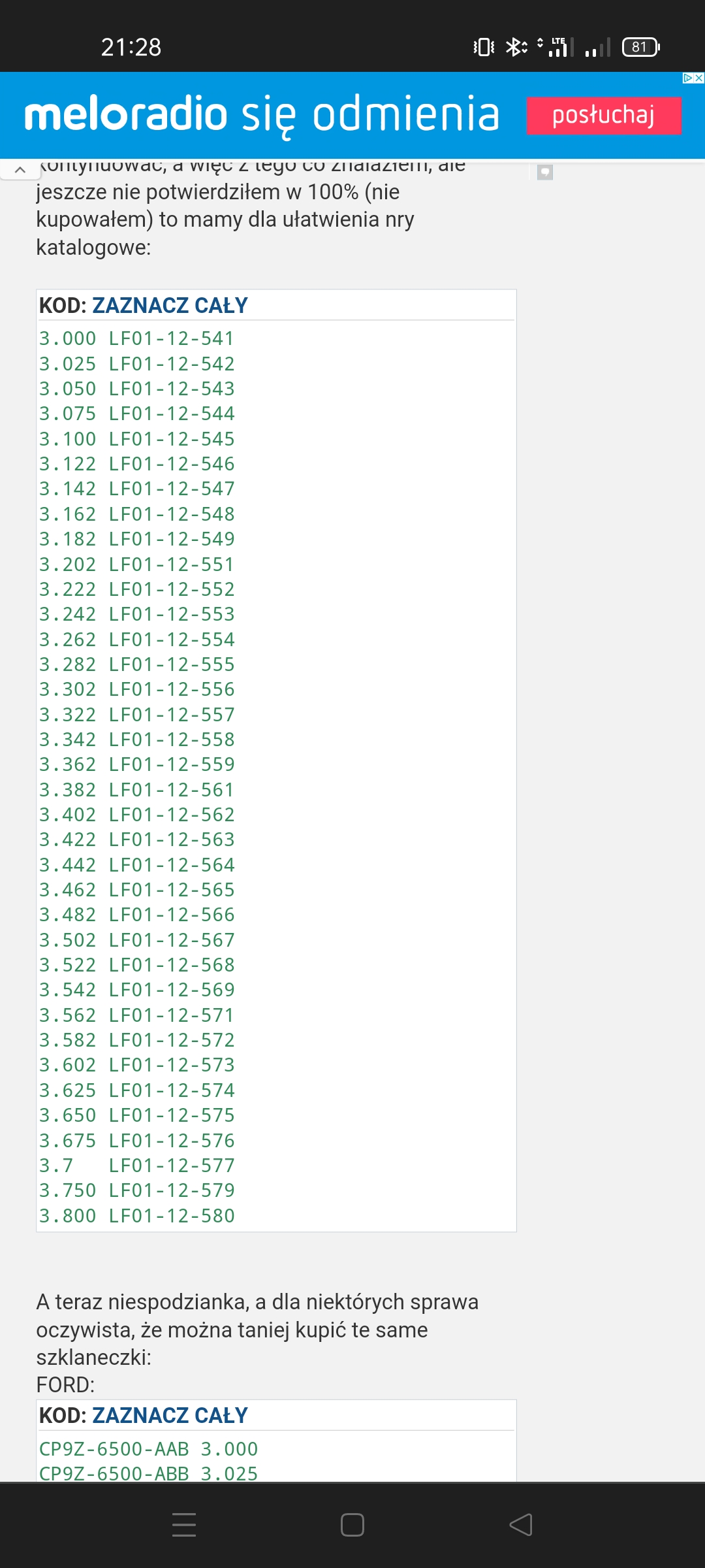 Poniżej załączam zrzut z numerami części w katalogu Ford oraz