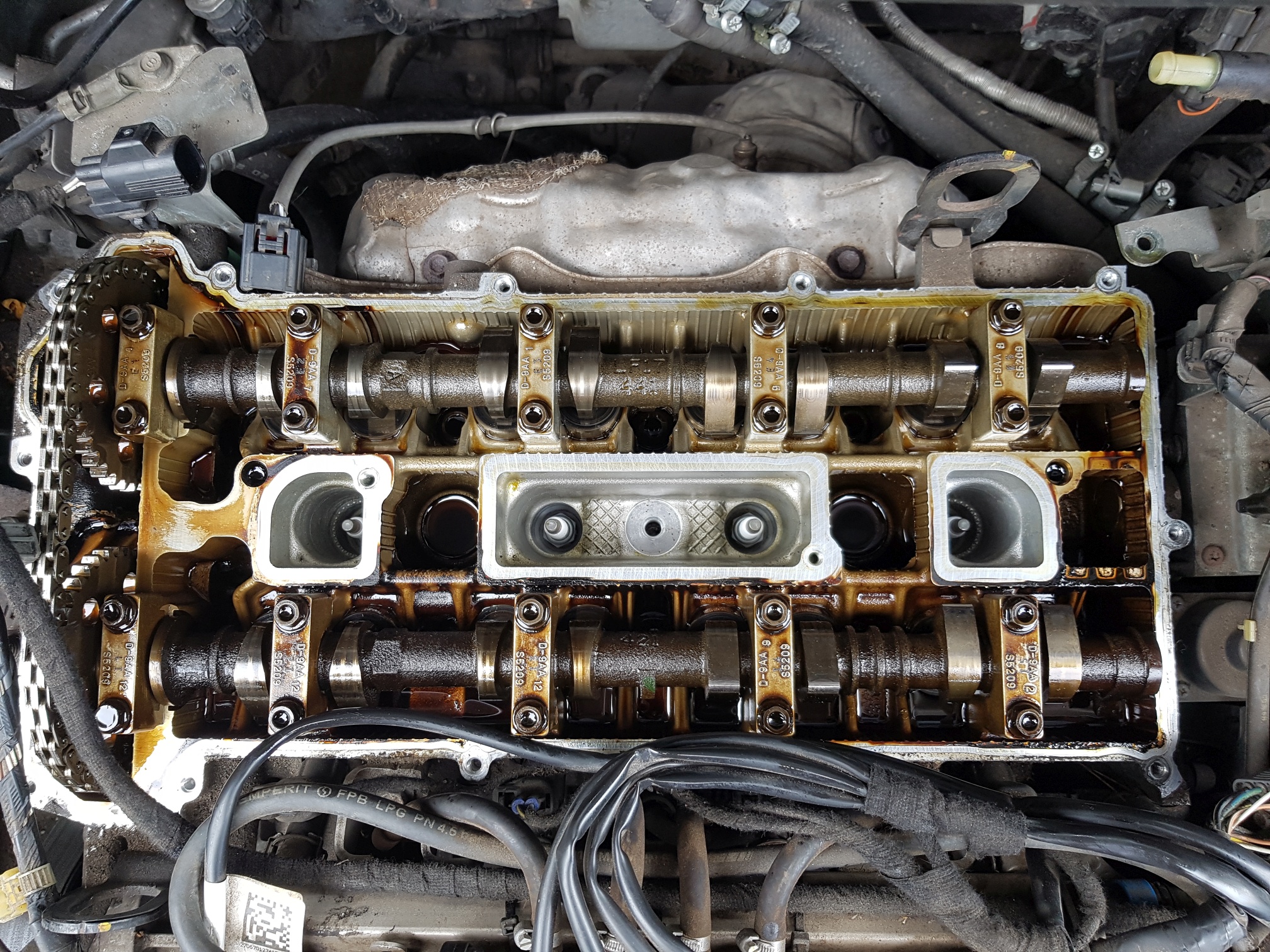 – autem zrobiłem 40 000 km na LPG i nie wiem kiedy wcześniej były regulowane zawory. Luzy wydechowe zmierzone 0.22-0.25mm – więc do regulacji (zalecane 0.27-0.33) natomiast ssące 0.23-0.26mm – wszystkie w normie (zalecane 0.22-0.28) Można więc przyjąć, że przy normalnie ustawionej instalacji LPG nie ma powodu do obaw. Spodziewałem się większego rozjazdu.