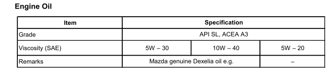 Co do wcześniejszego miałem Milersa 5Wx30 .Z tego co się dowiedziałem nie jest to olej polecany do Mazd, a od mechanika usłyszałem co innego.