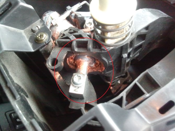 W mechanizmie lewarka jest taka kulka otoczona plastikowym kółkiem u mnie to kółko jest pęknięte przez co powstają luzy i przy próbie wrzucenia jedynki mechanizm się haczy.