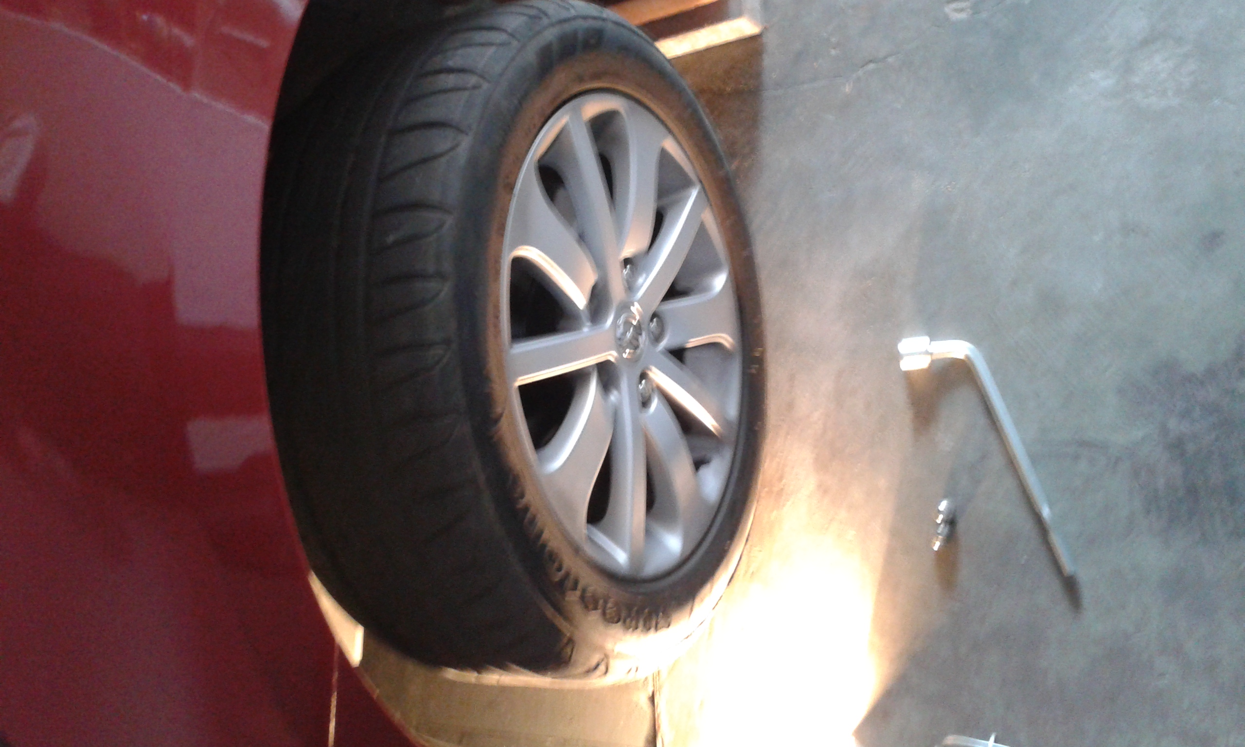 Pamiętajmy aby poluzować śruby na kołach przed podniesieniem auta. Niestety do przykręcania śrub nie posiadałem klucza dynamometrycznego ,więc dokręcanie odbywało się "na wyczucie".