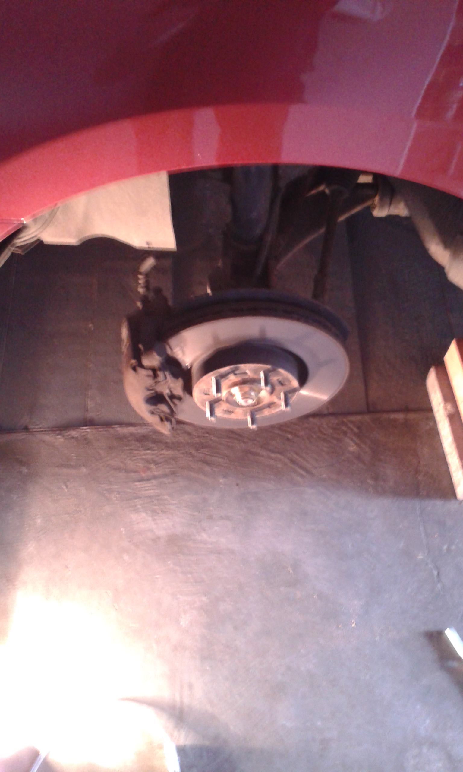 Aby tarcza nie latała docisnąłem ją chwilowo podkładką i nakrętką od koła. Nie martwcie się ,że teraz tarcza lata ,dociśnie je koło.