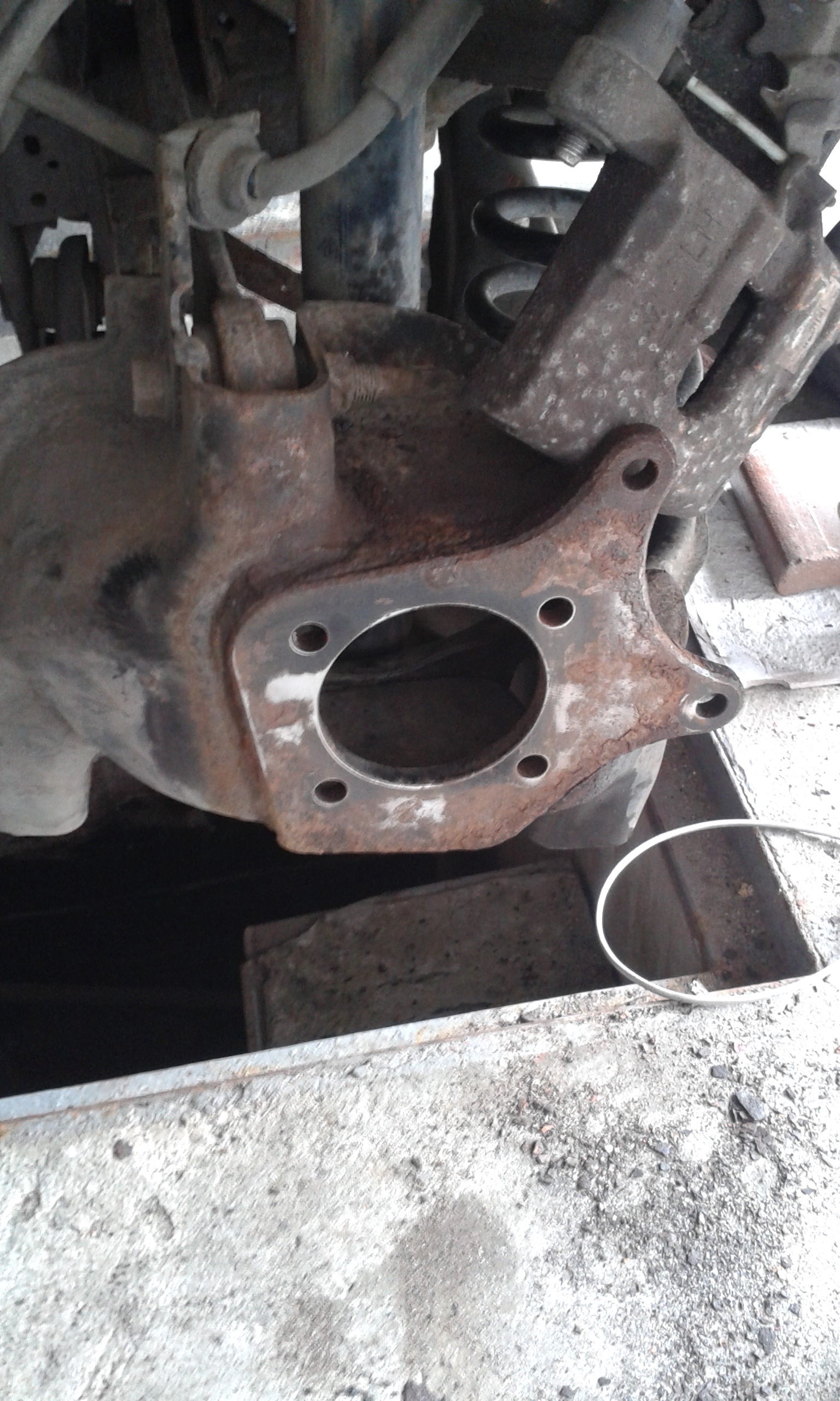 5.Przy użyciu gumowego młotka lub stalowego zbijamy starą tarczę. Jako ,że łożysko z przodu miałem wymieniane z przodu oczyszczamy tylko powierzchnie tulei z rdzy i nalotów.