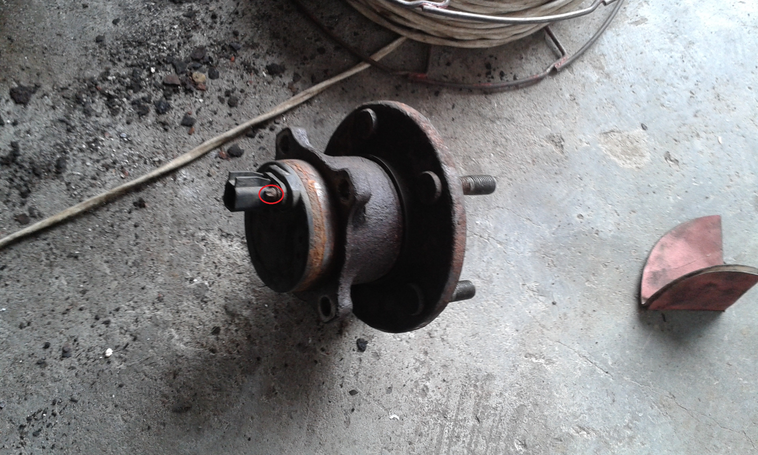 14.Następnie ze starej piasty przy użyciu nasadki "torx" lub nawet imbus odkręcić czujnik magnetyczny, i przykręcić go do nowej piasty. Miejsce śruby zaznaczone na zdjęciu poniżej.