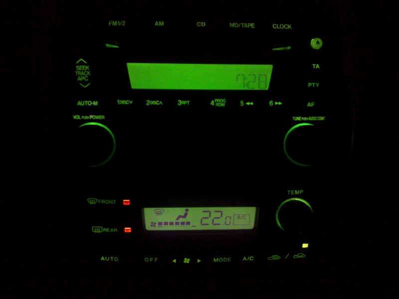 orientuje się ktoś gdzie można kupić zielone żaróweczki 12V do podświetlenia panelu klimatyzacji (brak podświetlenia klawiszy rear i front)? Szukałem na allegro, ale bezskutecznie. I jeszcze jedno – czy włączniki od świateł przeciwmgielnych, regulacji świateł i komputera też powinny świecić? Jak je wymienić?