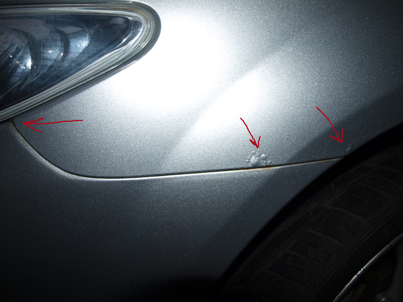 Główny problem polega na lokalizacji tych bąbli, są one na styku nadkoli ze zderzakiem.