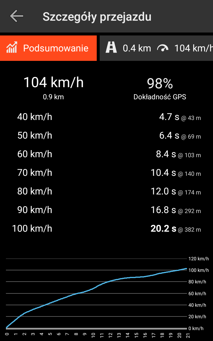 Mazdą podczas jazdy po mieście miałem nawet problemy żeby wyprzedzić autobus. Żeby sprawdzić czy "nic mi się nie wydaje" zainstalowałem apkę Drag Racer i sprawdzilem w ile rozpędza się mój muł do setki. Wynik mnie przeraził: fabryczne przyśpieszenie to 12,9 a u mnie wyszło 20,2 sek.