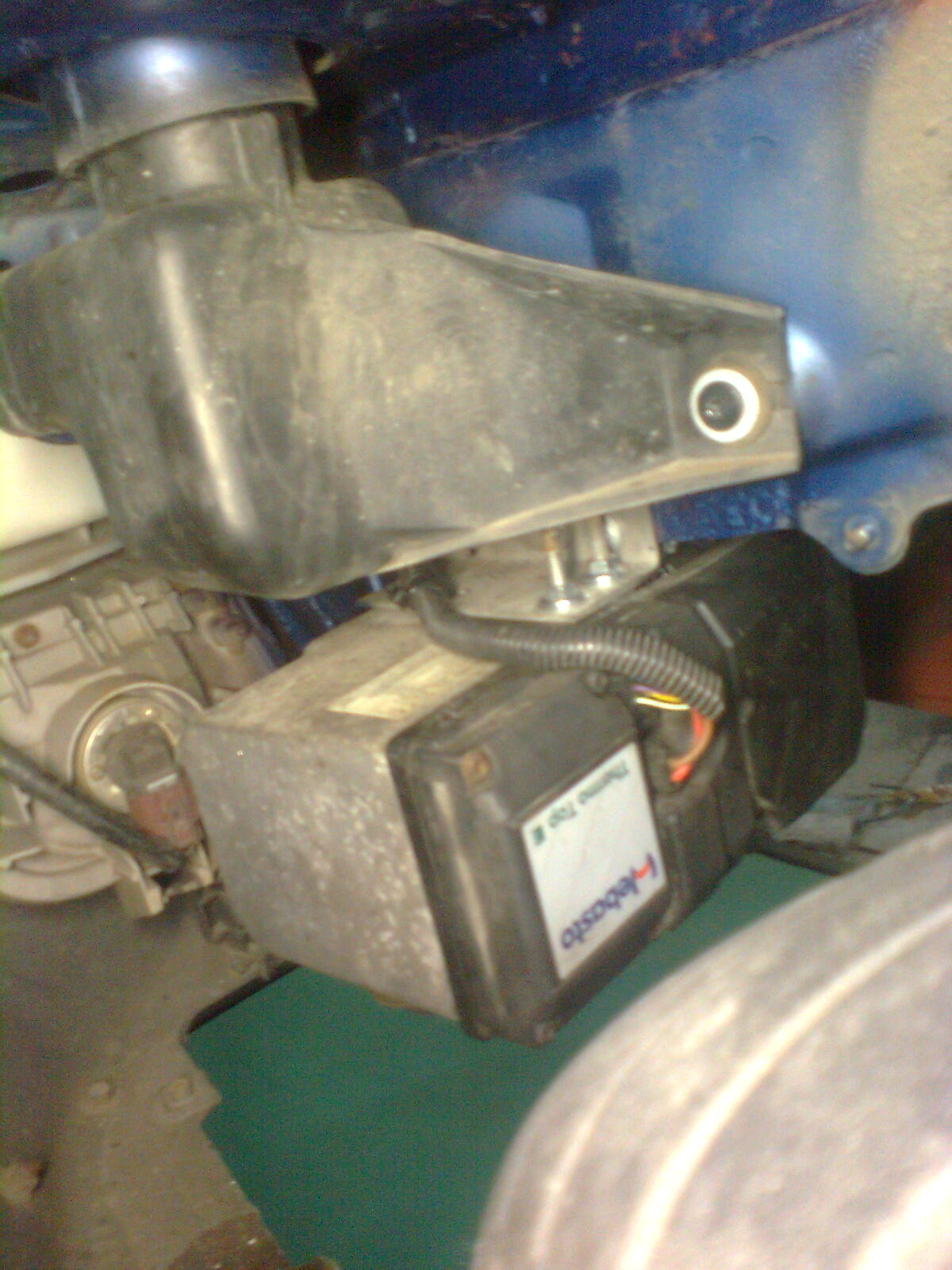 Myslalem o fotorelacji, ale w sumie nie ma co fotografowac. Montuje sie pompke wody i tlumik a reszta to okablowanie, przekaznik z bezpiecznikami i sterownik. Dodatkowo czujnik temp i antena. Ponizej zdjecie wszystkich czesci: