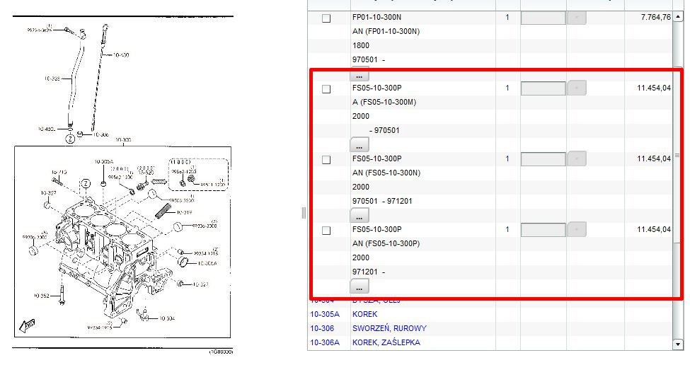 Silnik FS zmiany w bloku silnika w różnych latach produkcji