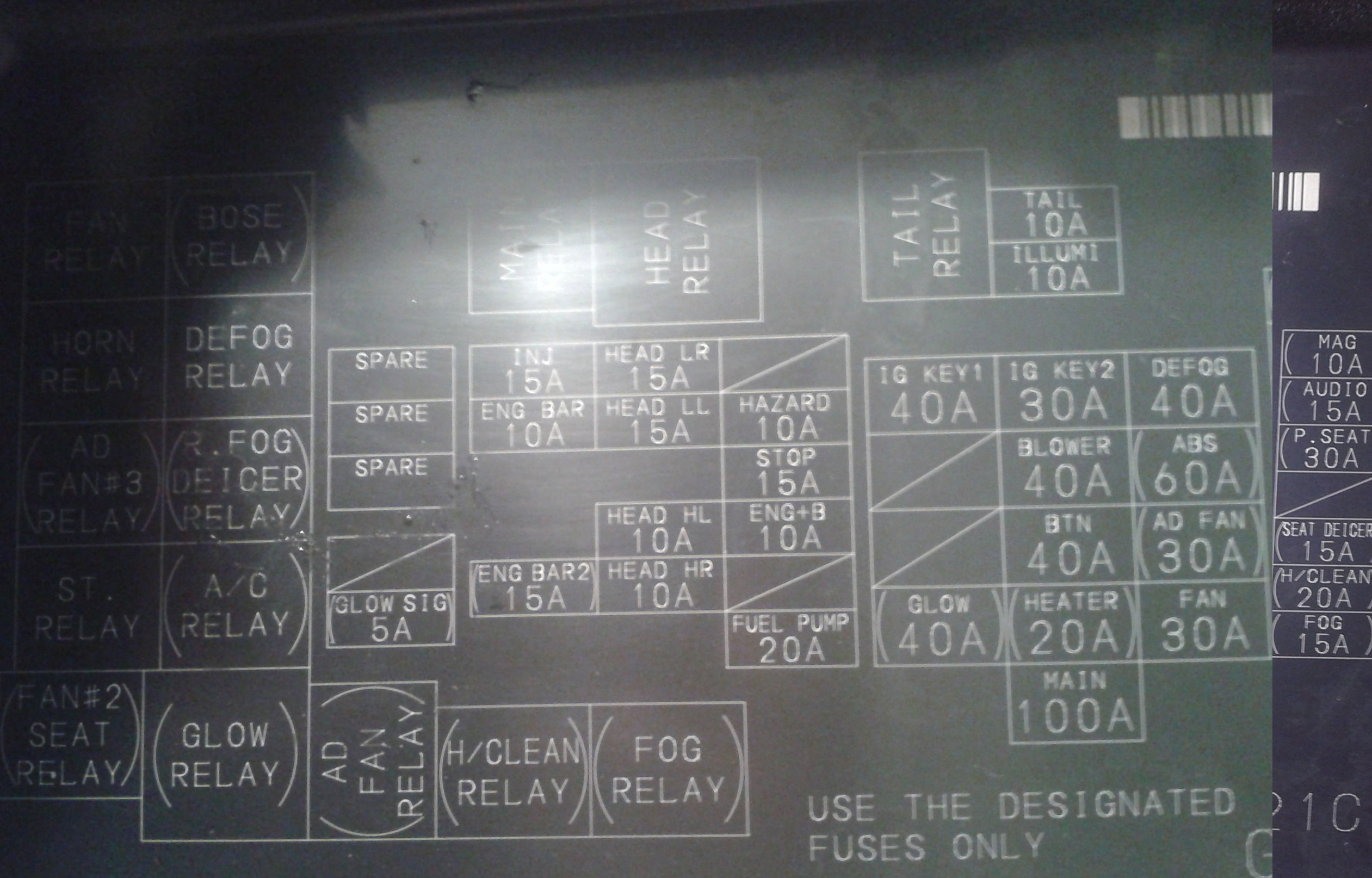 Co do bezpiecznika od świateł pozycyjnych to przesyłam zdjęcie obudowy skrzynki bezpieczników. Proszę o wskazanie jego oznaczenia.