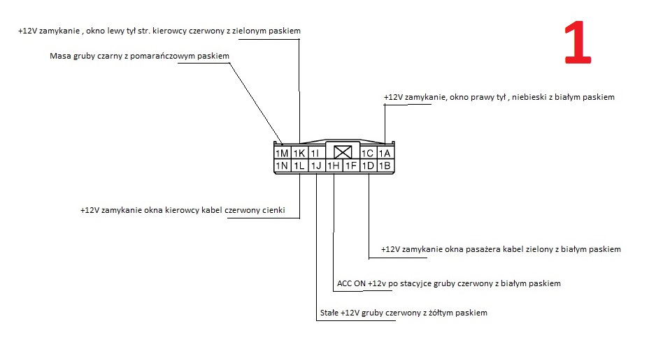 Podłączamy wszystko zgodnie ze schematem ze zdjęcia numer 2 , opisze podłączenie szyby kierowcy :