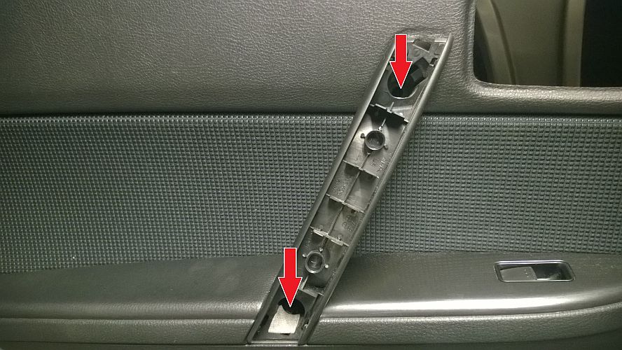 3. Zdjęcie maskowania uchwytu drzwi i odkręcenie śrub