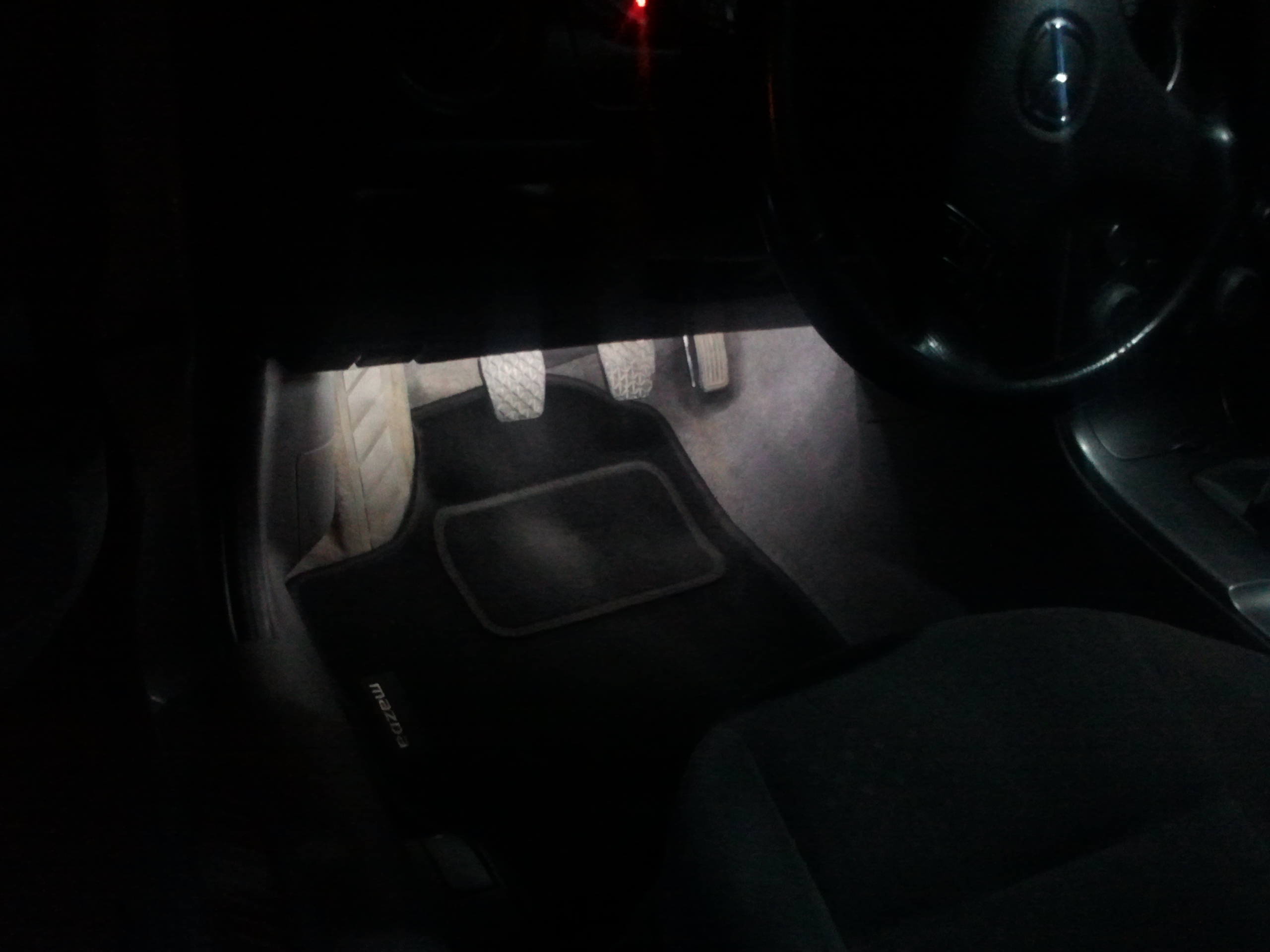 Lampki na nogi podłączasz do oświetlenia drzwi, albo wyłącznika w podsufitce, natomiast LEDy w bagażniku podpinasz pod lampkę, albo jej przewody – tak jest najprościej chyba.