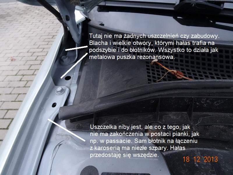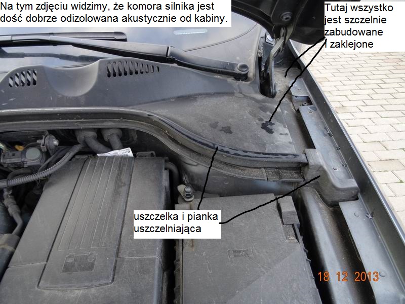 Weźcie sobie obejrzyjcie błotniki (blachy) po otwarciu maski. Tam wszędzie są mega szpary w karoserii. Inne auta mają komorę silnika odseparowaną (odizolowaną) szczelnie matami, gąbkami i uszczelkami. A w M6 hałas z kół i silnika hula między blachami błotników, podszybia jak chce. Później porobię fotki, to pokażę Wam te miejsca, o które mi chodzi.