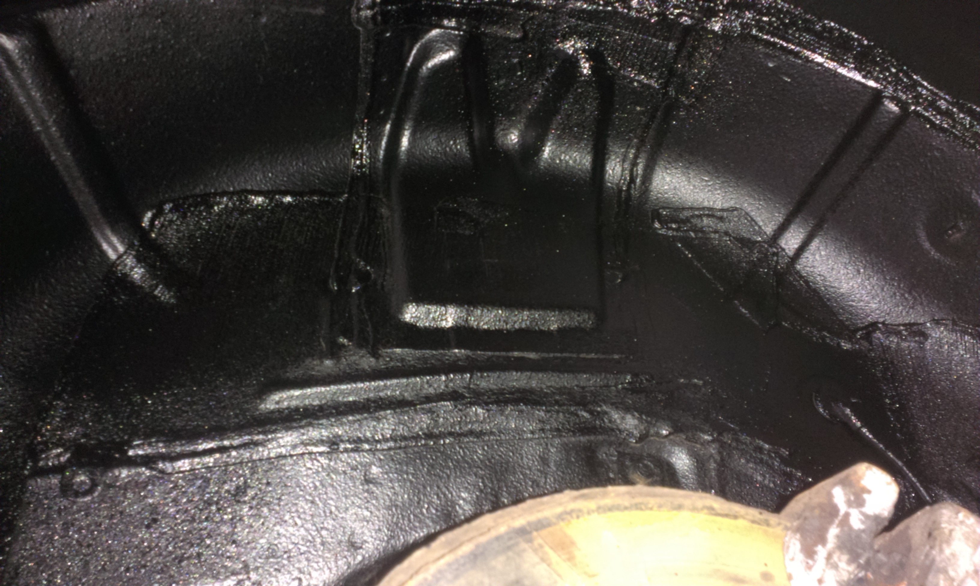 I tak...dwie szczotki na wiertarkę dziwnym trafem zniknęły w czasie pracy, poszło trochę nitro na przemycia, trochę podkładu i trzy puszki masy bitumicznej. Co mnie bardzo zdziwiło to nawet pod fabryczną masą zabezpieczającą pojawiała się rdza. No dosłownie <dupa> jak się patrzy.