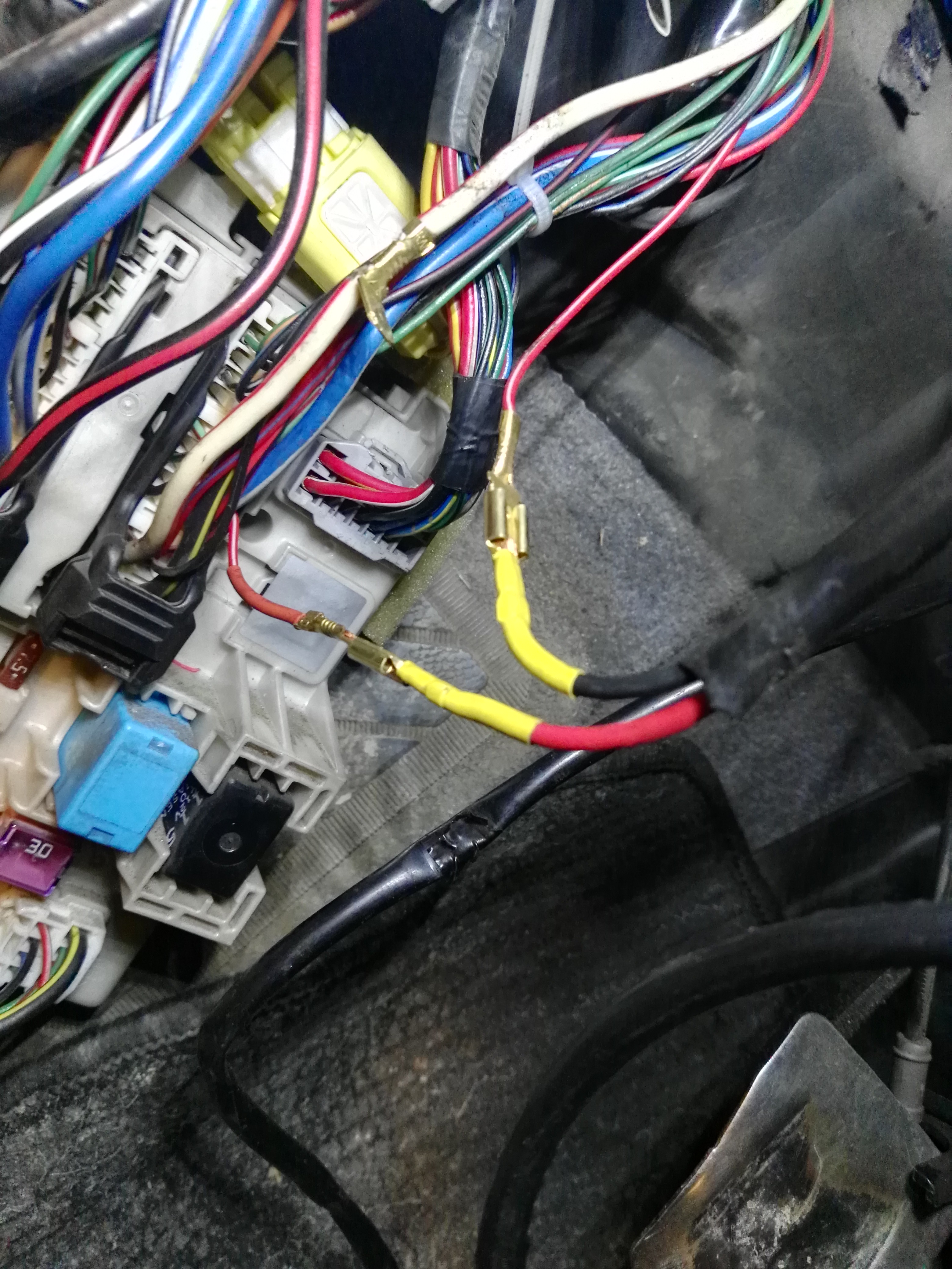 Pomijam fakt, że jest podłączony w środku do skrzynki bezpieczników tak jak na zdjęciu, czarny i czerwony kabel wpięty w obwód biało-czerwonego według schematu do wersji po lifcie. (ja mam przed liftem)