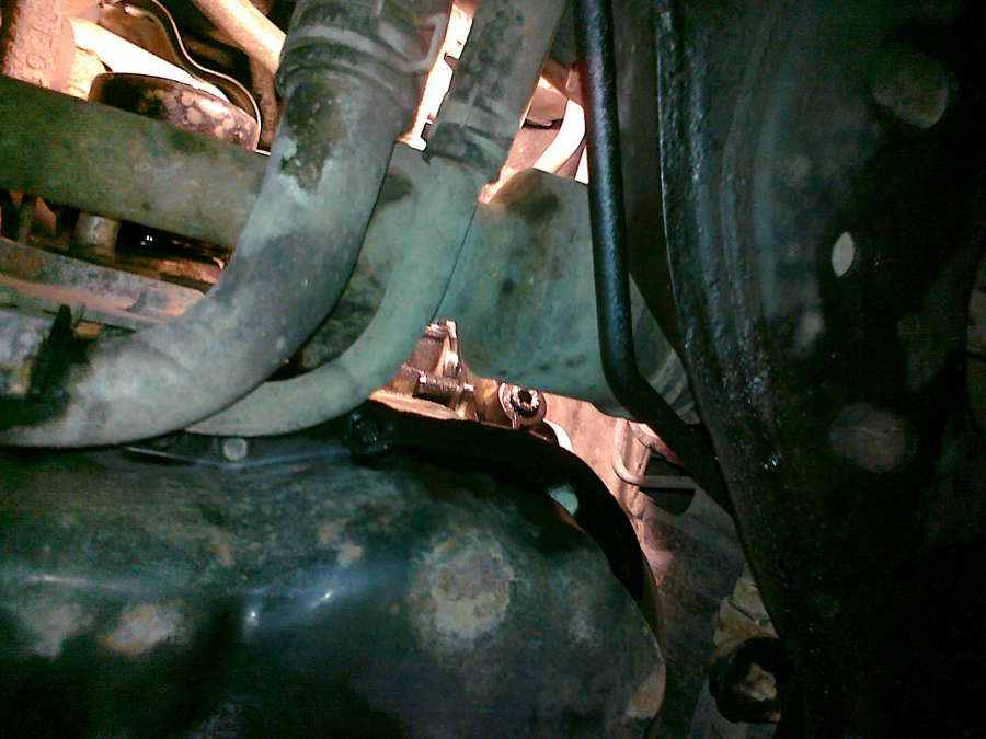 2.0 MZR-CD (143KM) kombi. Z silnika cieknie olej, ubywa co całkiem sporo i szybko, wczoraj zajrzałem pod spód... z pobieżnych oględzin wynika, że cieknie z punktu zaznaczonego kółkiem, jakieś pomysły czego spodziewać się u mechanika i czemu tak drogo?