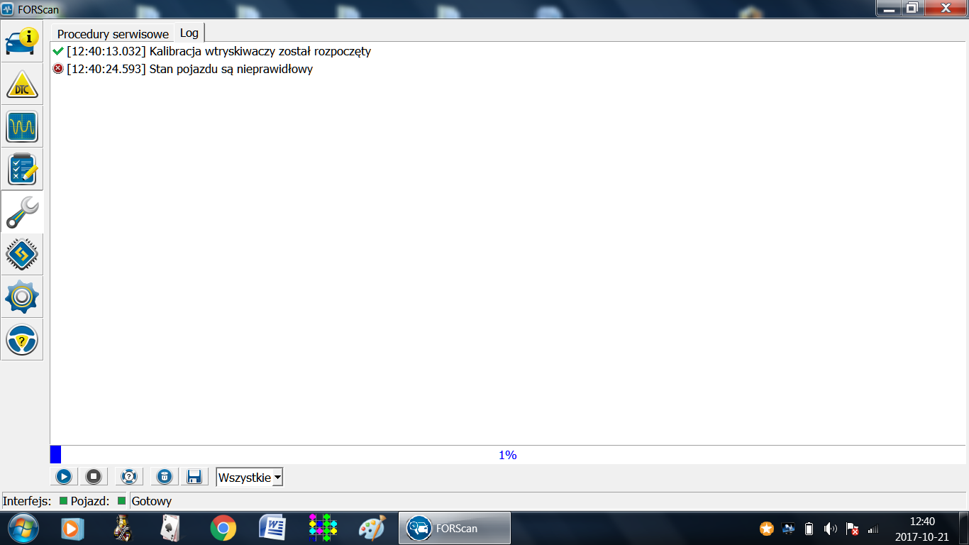 Ja się tam za bardzo z tym programem nie zapoznałem jeszcze ale może na początek sprawdź logi (u góry są dwa kafelki-procedury serwisowe i log), może tam coś więcej będzie opisane. Następnie po wymianie wtryskiwaczy należało by wpisać ich kody (procedury serwisowe>zmiana kodów korekcyjnych wtryskiwaczy). Możesz też zamiast 'wyzeruj adaptacje wtryskiwacz paliwa' spróbować "wyzeruj wszystkie wartości adaptacyjne"
