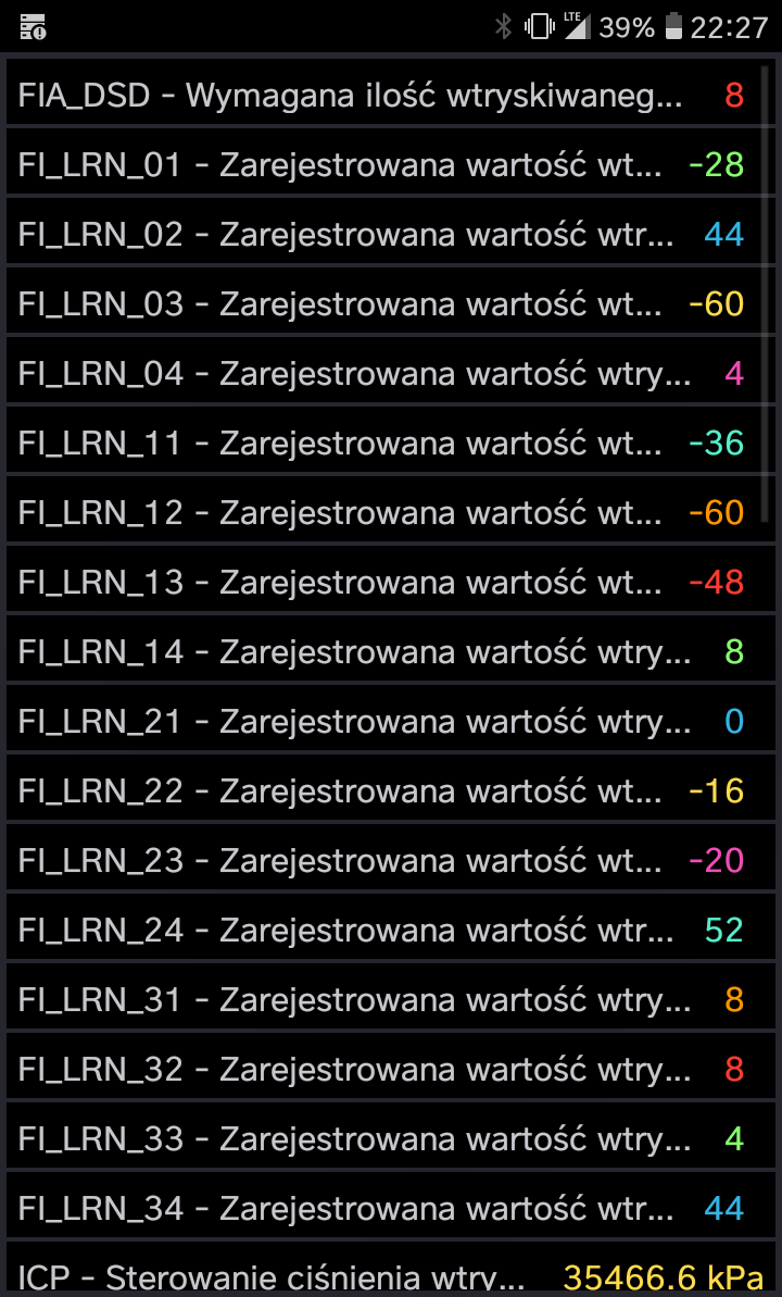 Screen z godziny 22:27 jest jak było słychać te stuki metaliczne, screena z godziny 17:48 to wartości jak była błoga cisza i miękka praca silnika.