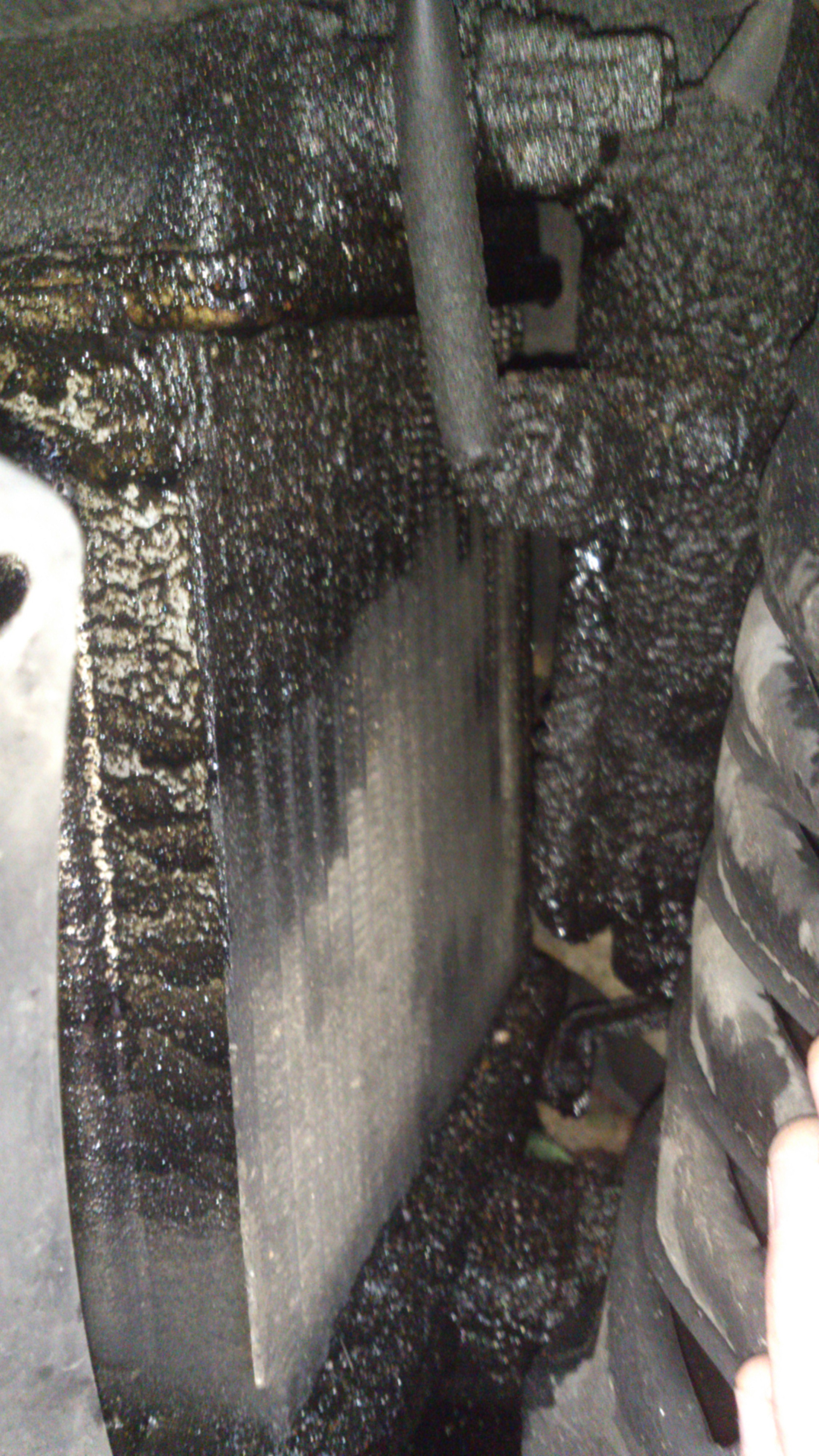 I mnie natchnęło do demontażu i naprawy intercoolera. Powodem, dla którego to zrobiłem jest chęć ciągłego ulepszania i szukanie dziury w całym. A tak na poważnie, to w ASO już sporo czasu temu dowiedziałem się, że moja mazda nie była na akcji serwisowej związanej z wadliwymi coolerami. No i faktycznie, było troszkę oleju pod górną rurą i na żeberkach coolera. Po porządnym wyczyszczeniu ujrzałem 2 pęknięcia przy górnej rurze. Oczywiście zostały zalepione poxiliną: