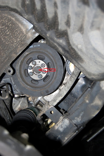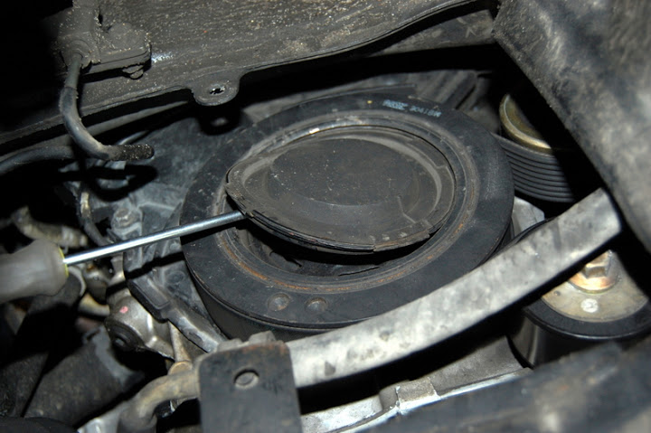 Z koła pasowego wyciągamy gumową osłonkę śrubek